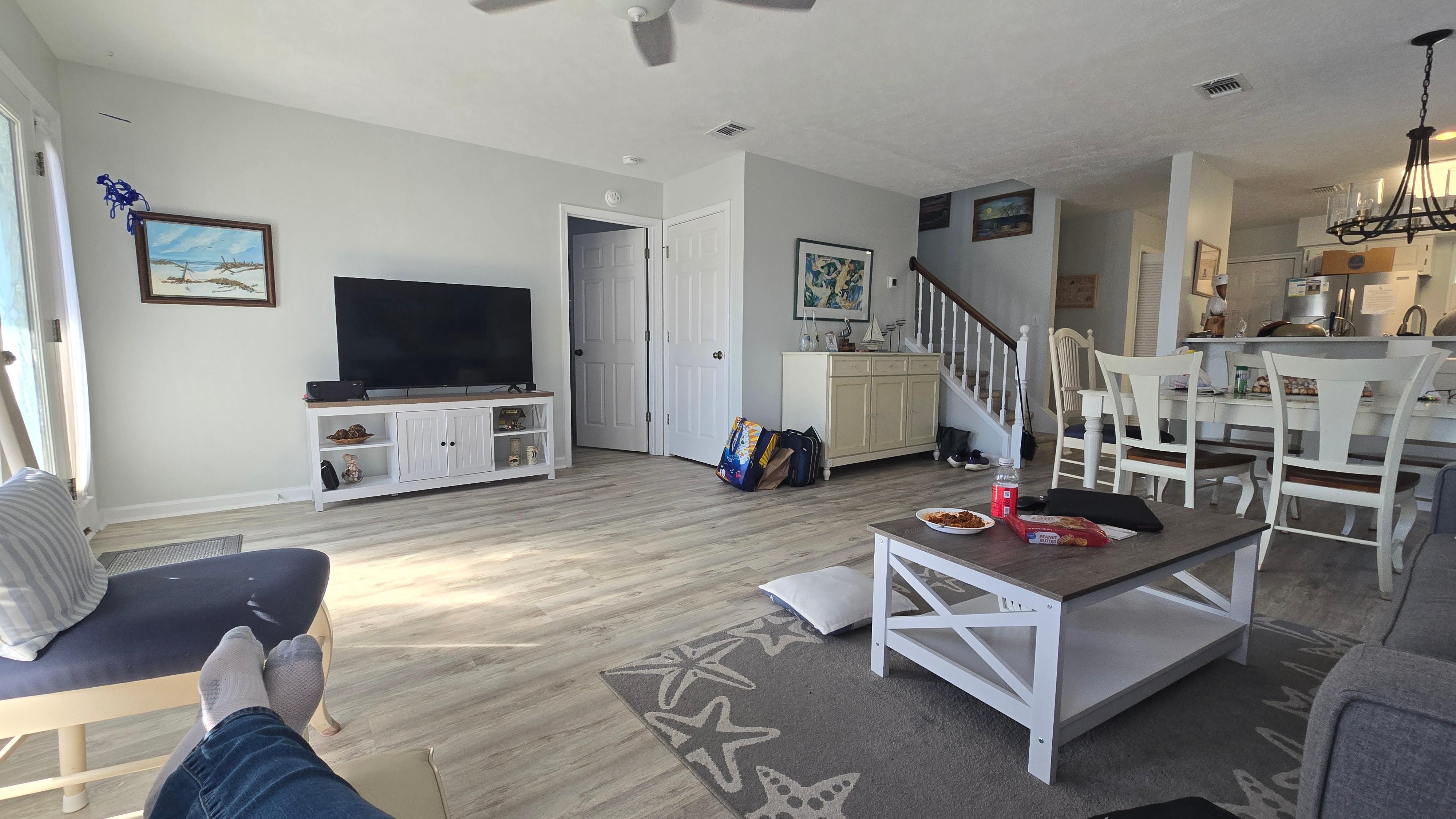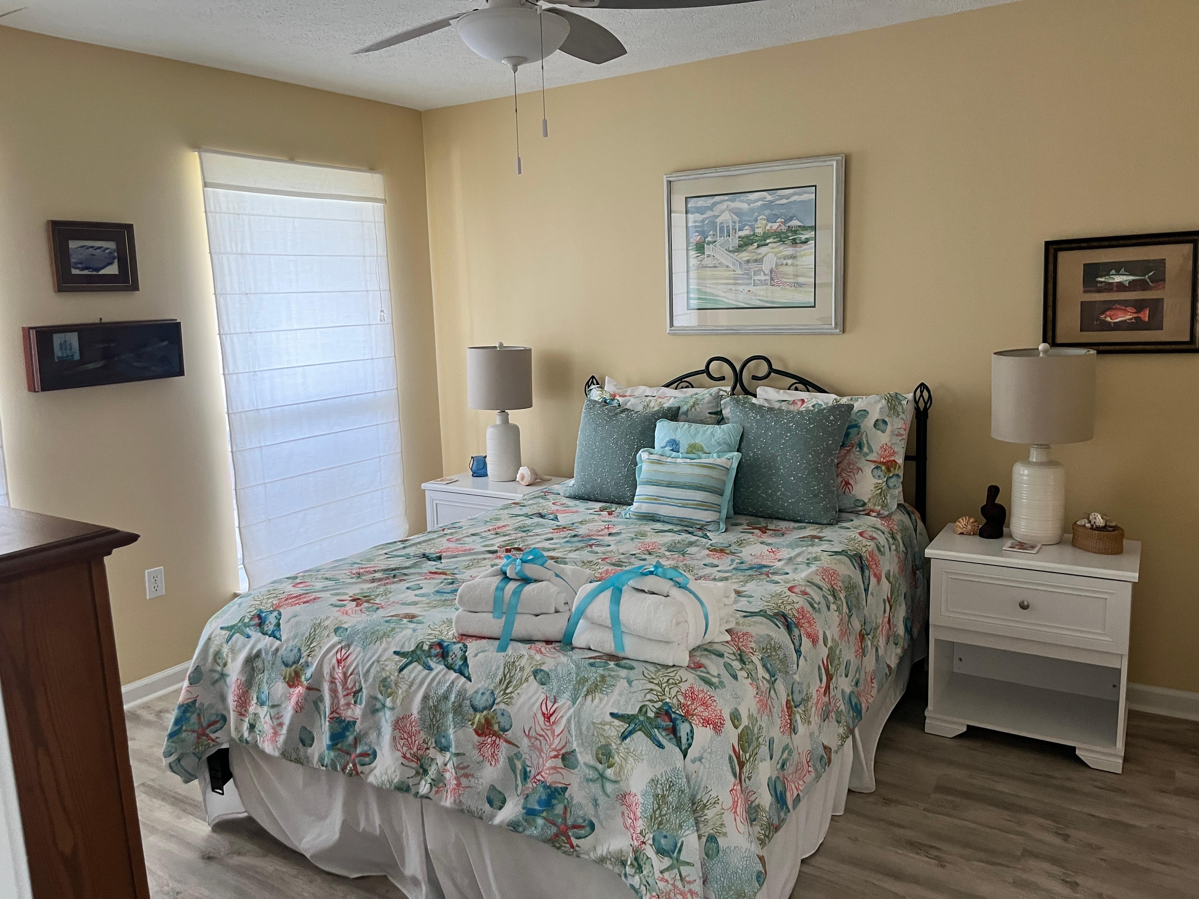 One of the best little diners on the beach is just one block away and major grocery stores are less than 1.5 miles away. Comfortably furnished with an overstuffed couch, dining table to seat 6 people, and even a fully loaded bookcase packed with perfect beach-read novels. There is even a 2-car garage. Enjoy the large yard which is actually the combination of 3 individual lots. Plenty of room to throw a ball or Frisbee. Roast marshmallows over a fire in the backyard fire pit. This is your perfect beach vacation home. Come see for yourself!