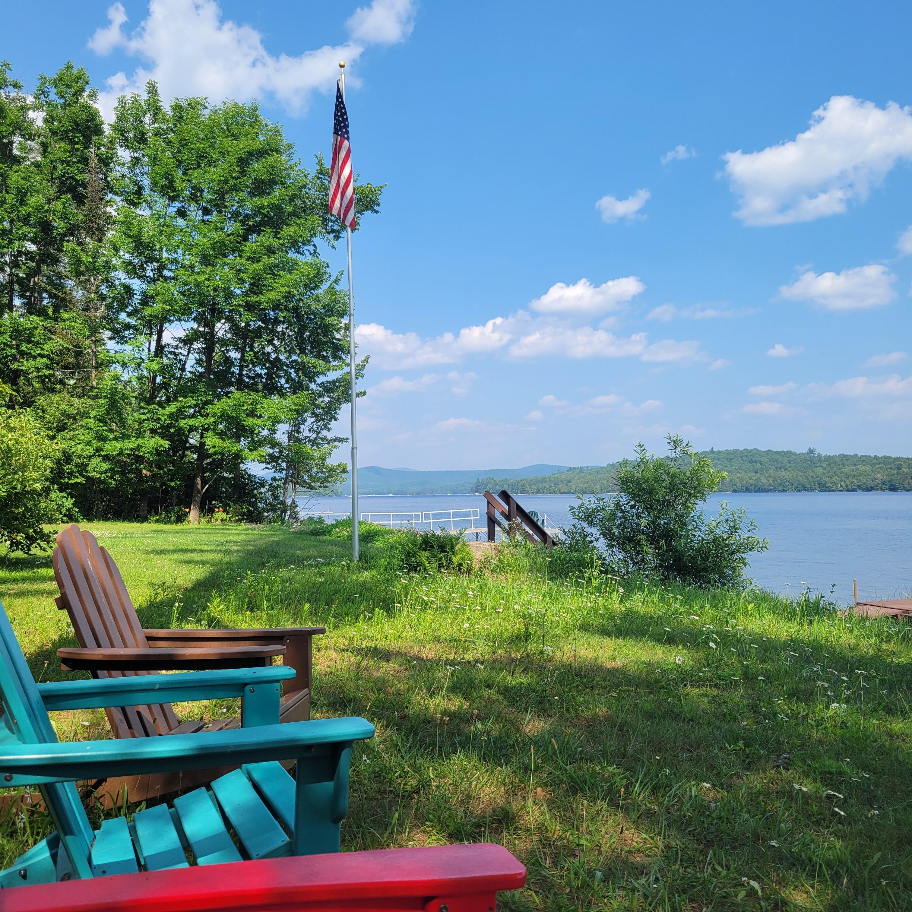 A half-acre site assures quiet and privacy. It has three bedrooms (two with double beds and a bunk room), two baths, washer and dryer, zoned electric heat and four room air conditioners, satellite TV, VCR, and DVD players. A three-minute walk (or you can drive) leads you to your own semi-private beach on Lake Pleasant. The beach is shared with any guests staying at our other house "The Homestead". The Lake Pleasant Marina is nearby. Boat rental and launch is available at the Marina. You also have snowmobile access to Lake Pleasant from our beach.