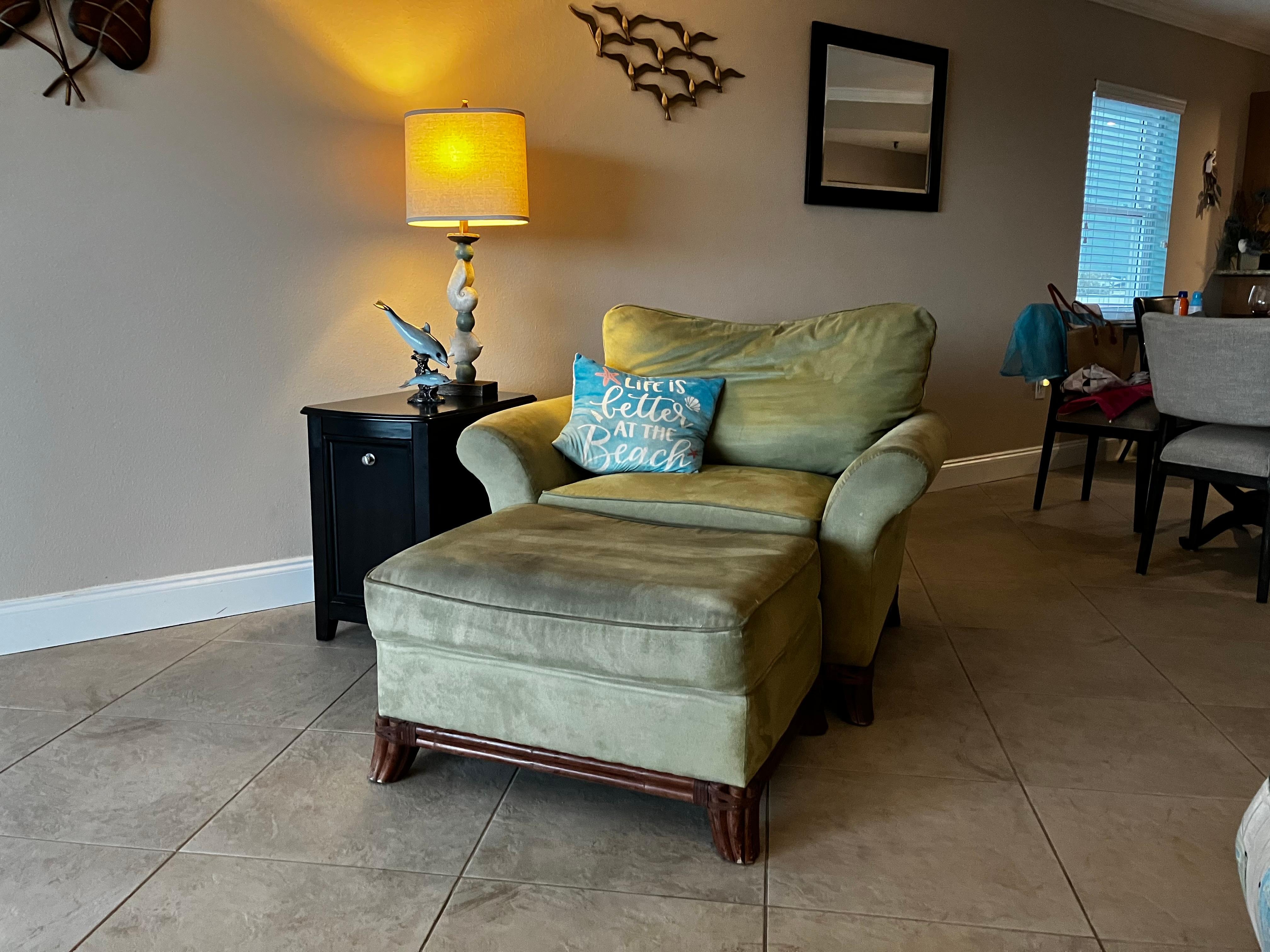 Our 2 bedroom condo is fully furnished, and is a Gulf front corner unit. It is decorated in the typical Floridian beach style in pastel colors, with Italian ceramic tile throughout the unit. Enjoy a light meal in our kitchen and sit up barstools to the eat- in bar area. The kitchen looks into a very spacious living room/dinning room open area concept. Offering a spectacular view of the beach for everyone.