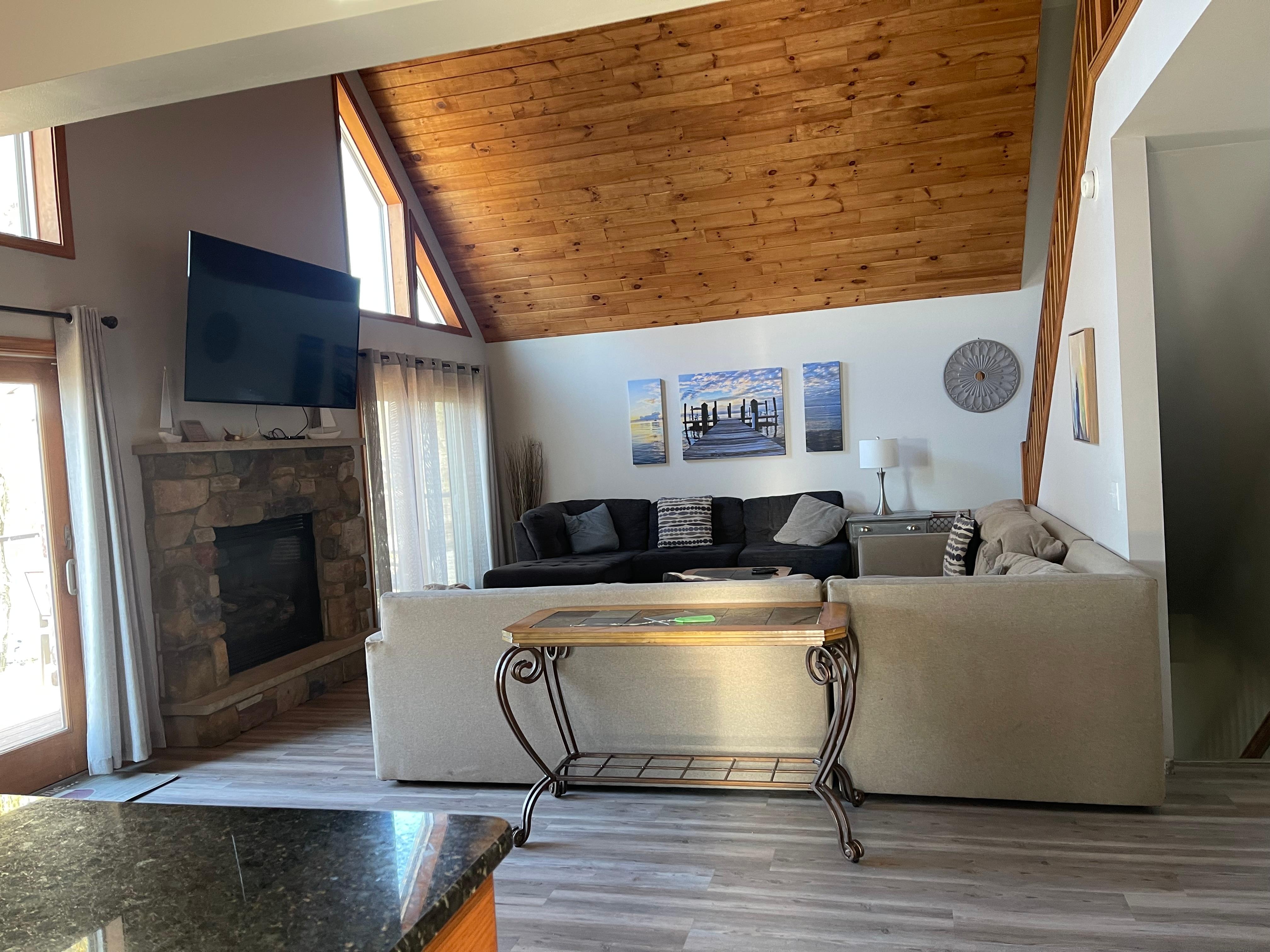 Dramatic lake views await through expansive windows and glass doors from much of the house! A beautiful stone fireplace sits at the center of the huge family room where you can relax, take in the views, watch a movie, etc. with your group, which also opens to the kitchen and dining area. Arrowhead Lakes is close to Pocono ski resorts and the area features year-round opportunities for swimming, fishing, kayaking, skiing, and more. The options are endless. Book this property today for your chance to create your own memories! Summer rentals are weekly (Sat-Sat), and daily rentals (two-night min) are available during off-season weeks.