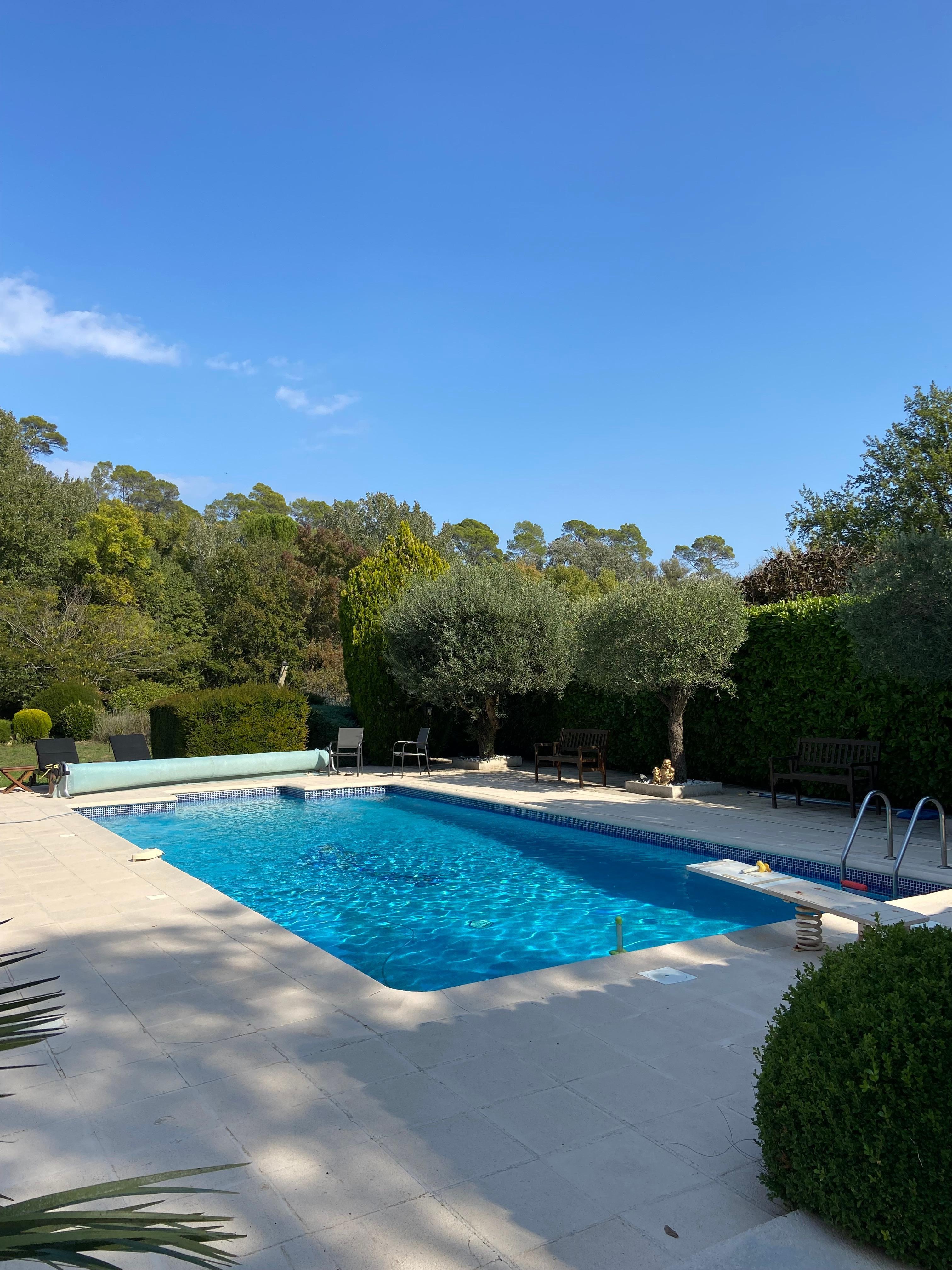 Villa 130 m² quiet, 3 bedrooms (3 beds 160x200), 3 bathrooms (including 1 with thalassotherapy bath), fully equipped kitchen, located in an exceptional setting on a flat wooded and fenced 4800 m², close to the sea. river Argens, large swimming pool 10m x 5m with diving board, large terrace with sunbathing and shaded terrace 40m ², barbecue, plancha, private outdoor parking for several vehicles, ping-pong, petanque ......... ..