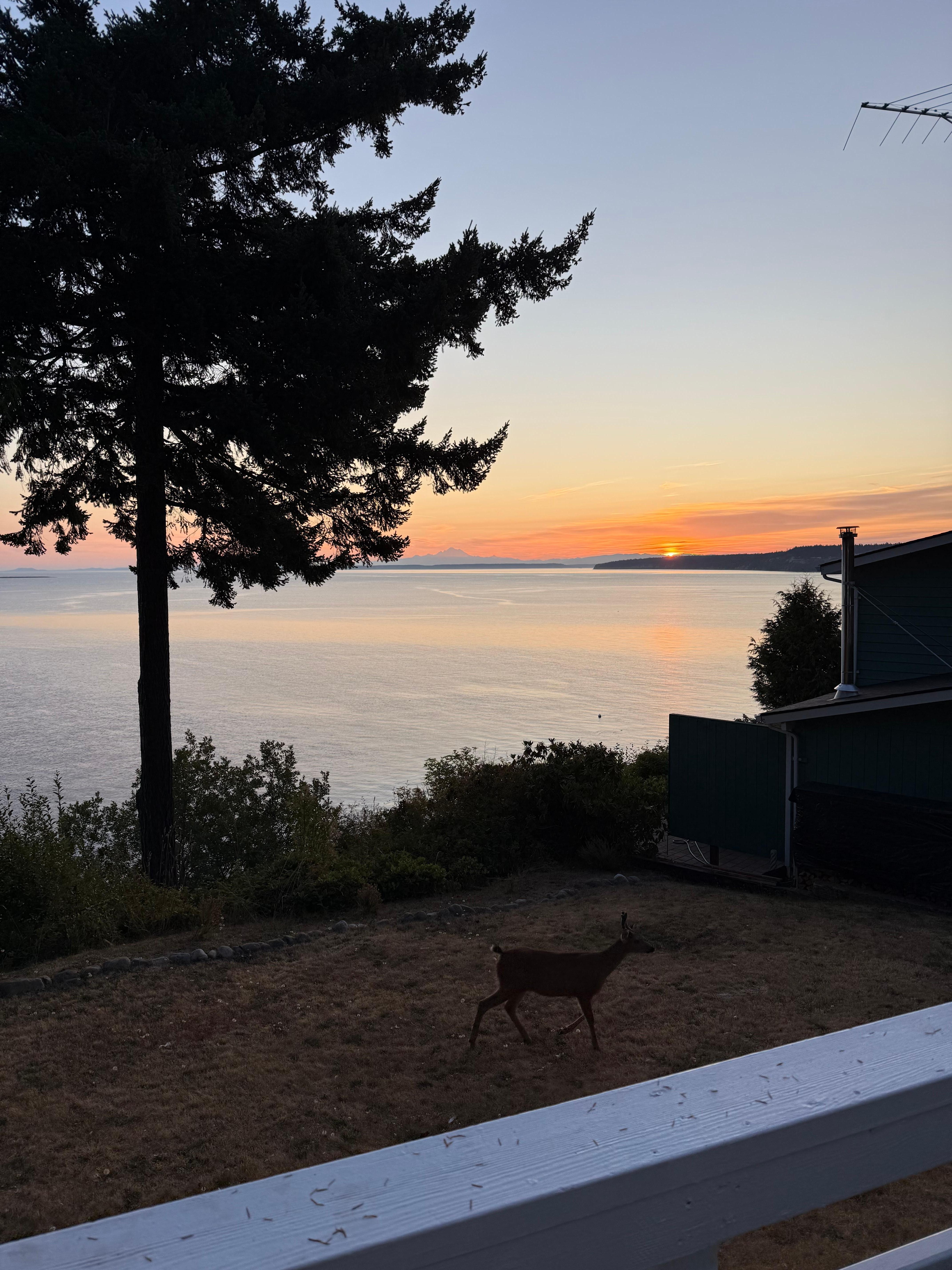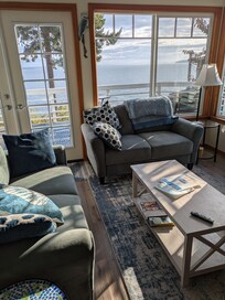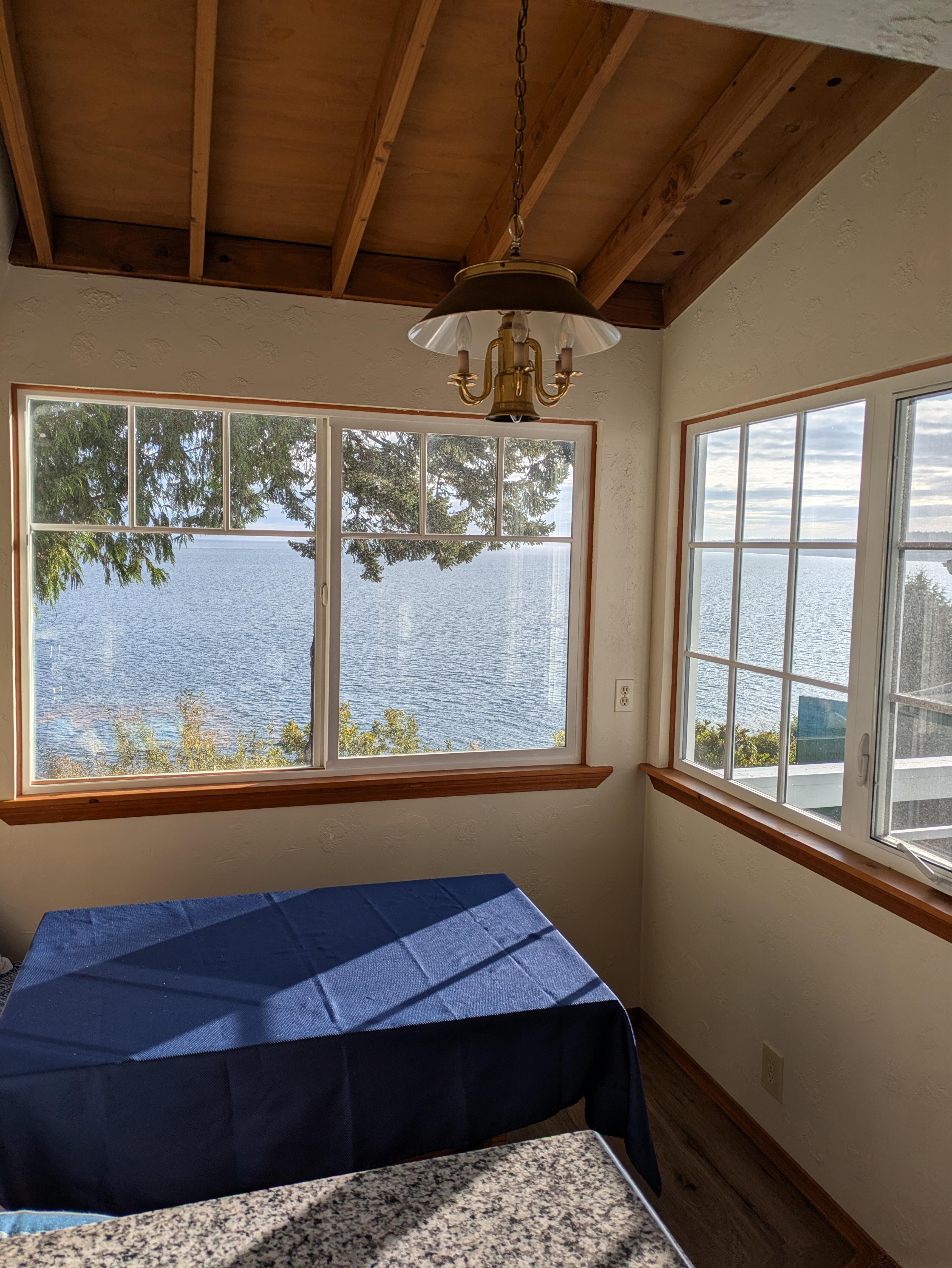 Come rest, relax and be renewed in this charming beach cottage which offers exquisite views across the Bay to Mount Baker, when the grand lady shows herself, and is a haven for eagles, deer and a variety of aquatic life. You will probably view sea lions bobbing in the bay from time to time, and even an orca or two may surprise you as you enjoy breakfast or a coffee on the patio. An easy walk or drive to the beach at Diamond Point.