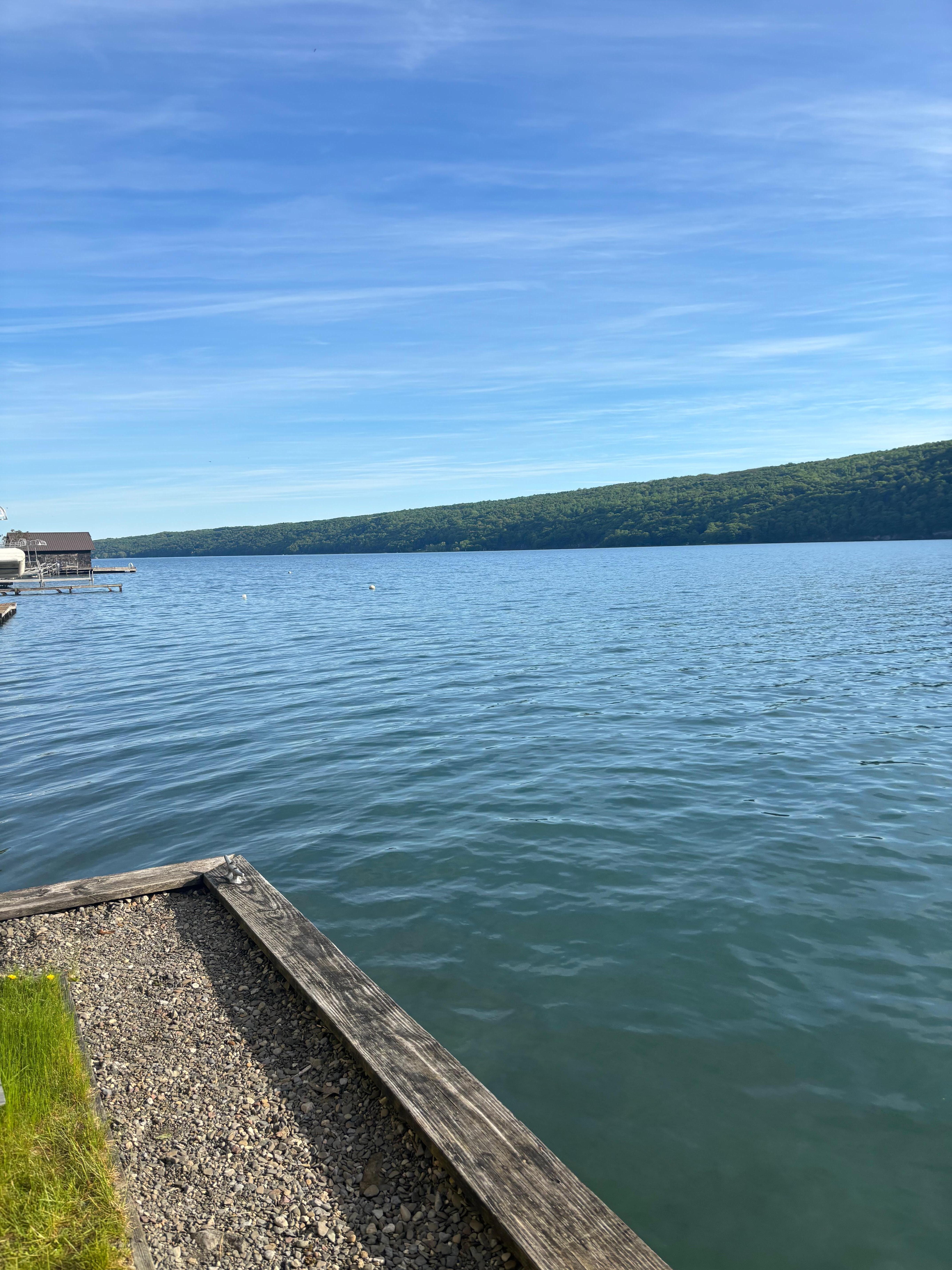 Bring your pet to this beautiful lake house which sits DIRECTLY on Skaneateles Lake, one of the most crystal clear lakes in the United States. We work on the "honor" system and believe in trusting folks so we don't charge a pet fee. The home has large picture windows with a stunning view of the lake and the majestic cliffs on the eastern side. It is 4 bedrooms and 2 and 1/2 baths with a fully renovated kitchen, a screened-in porch, central heat and air, and a fireplace. It has a fully equipped office where you can work remotely, if needed. The home has an outdoor gas grill, fire pit, and screened-in porch for outside dining. There's ample pristine waterfront for swimming, kayaking and paddle-boarding directly from the shore of your home (two kayaks, paddle board, and canoe provided). If you want to bring a boat or rent one at the Skaneateles Marina, there's a slip and cleats to secure your boat. Enjoy a fire at night in the firepit on the lawn by the lake under a million stars. You can also tour one of the nearby wineries and have dinner in the picturesque village of Skaneateles. People from all over the world come just to visit the charming village of Skaneateles with its cute shops, gorgeous architecture, and wonderful restaurants. In autumn, the lake is "on fire" with the color from the gorgeous fall leaves. Bed situation: A set of twin beds on the second floor; a queen bedroom on the second floor; and a king bed in the master on the first floor. Then, you take an interior staircase down to the original part of the house where you'll find a set of twin beds. You can walk out directly onto the dock from here and there is a rocky beach to your left leading into the lake. At night, you can open the windows and hear the waves lapping the shoreline. Skaneateles is a very peaceful and beautiful place.