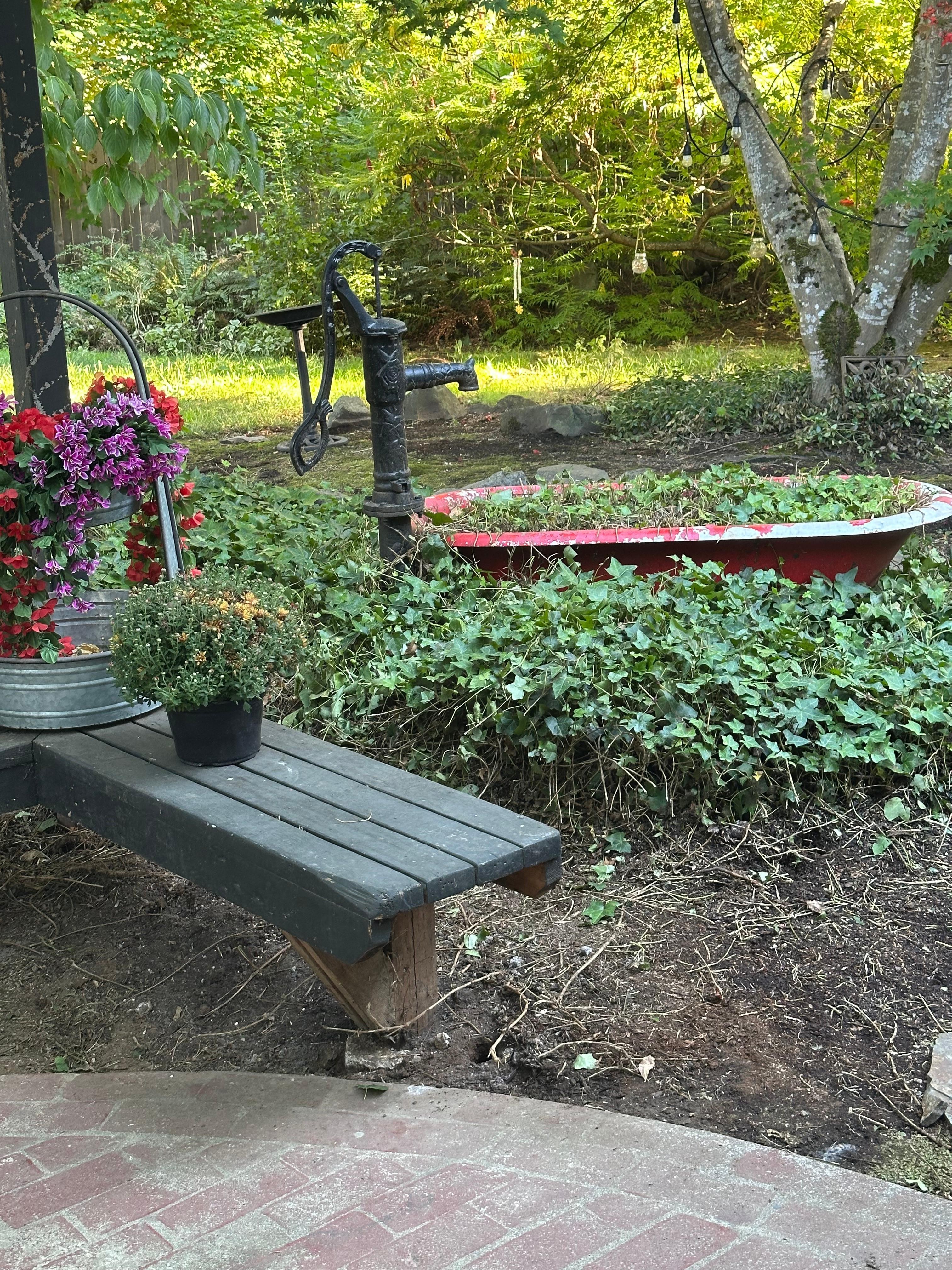 Now for specifics - it's about 2800SF - 3 bedrooms/2 baths (one bedroom on the main floor w/ a queen bed). Bedrooms upstairs have a double and California king beds- huge rooms with dormers. Back to the downstairs - large country kitchen with eating area and sun room (and yes there is sunshine in Oregon!). Walk thru the French doors to a large deck and fire pit.