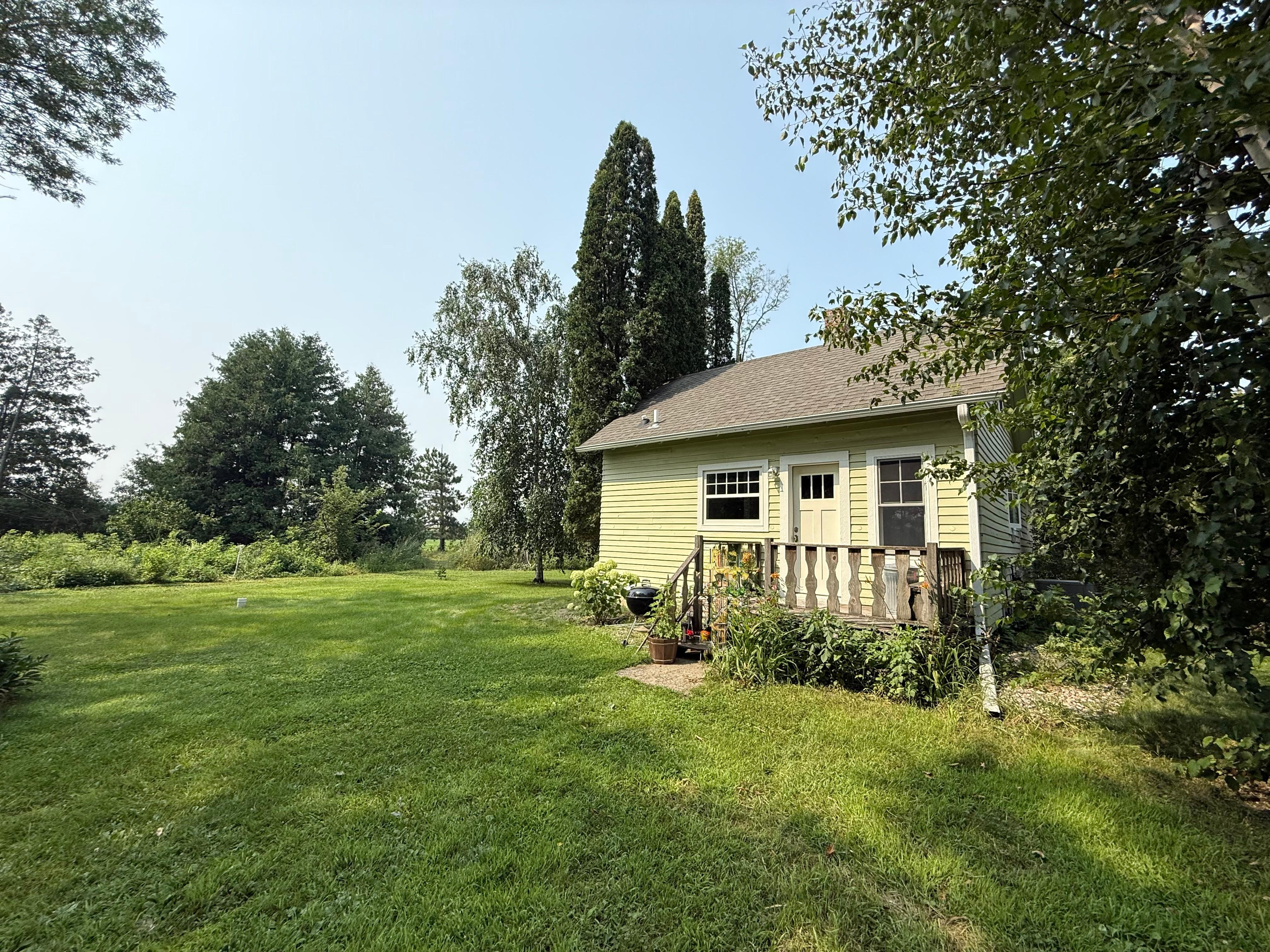 The little farmhouse is situated on 20 acres in the rural area of Battle Lake, Minnesota. There is a preserve to the west, situated on undeveloped lake shore, a soybean field to the south with open hay field to the east. It has a prairie garden that was started as a preservation site for the disappearing monarch butterfly. Those who come to visit may wish to see this noble butterfly in its natural habitat. The farmhouse is very clean and kept in its original 1919 character. The cooking stove is propane. There is one studio bedroom with a full (53 x 75 bed) and similar size podium bed upstairs in the loft. There are skunks under the old barn, marmots under the old feed shed, red and gray squirrels, fox, coyotes, beaver down at the dock at night and deer who pass through to eat the apples from the trees. A guest may or may not encounter wild life, but if so, the owner asks to observe but not disturb. A coyote or raccoon may wake you up at night. It has its resident bald eagle (utility company cut down its nest in 2018), raptors and a multitude of birds depending on the season. There is a main house on the property to walk past, through a grove of trees, to the lake dock or one can drive to the main house and take a shorter walk from there. There is bass and sunfish fishing off the dock. One can swim off the dock but there is no sandy beach. There is no television, the house has connected WiFi. There is an outside fire pit and if it is a cloudless night you can see the stars, there is no light pollution. The sunsets and sunrises from the dock are beautiful. This place is for a special type of person(s) who wish to have a relaxing time in a rural setting.