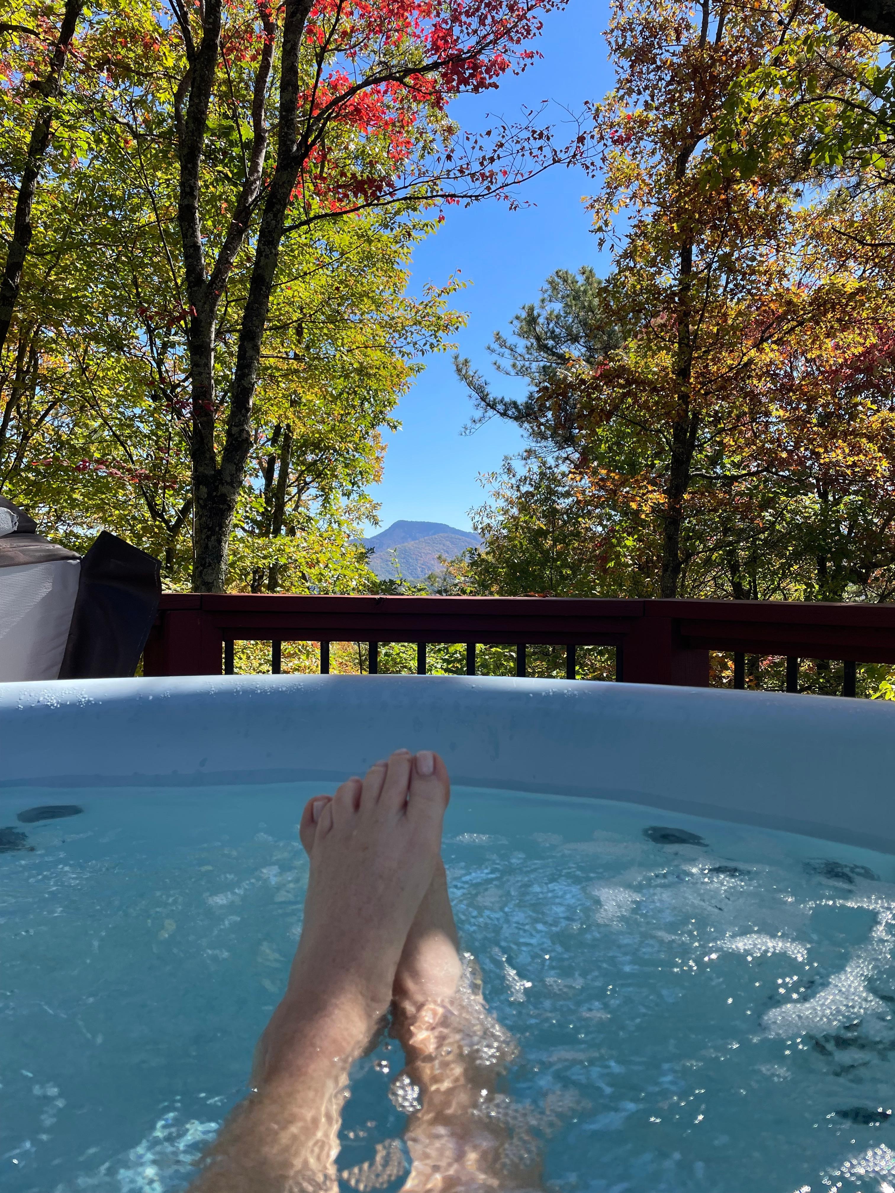 Nestled high in the treetops,at 4000 feet elevation, the cabin offers westward views of the Great Smoky Mountains and eastward views towards beautiful Maggie Valley. Enjoy a round of golf at one of many courses in the Western North Carolina foothills, fly-fish for trout in an icy mountain stream, rafting in the tumbling Nantahala or French Broad Rivers, or snowboard down nearby Cataloochee Ski Area. Then relax, in the evening, submersed in the 'hot tub under the stars' while cooking dinner on the grill.