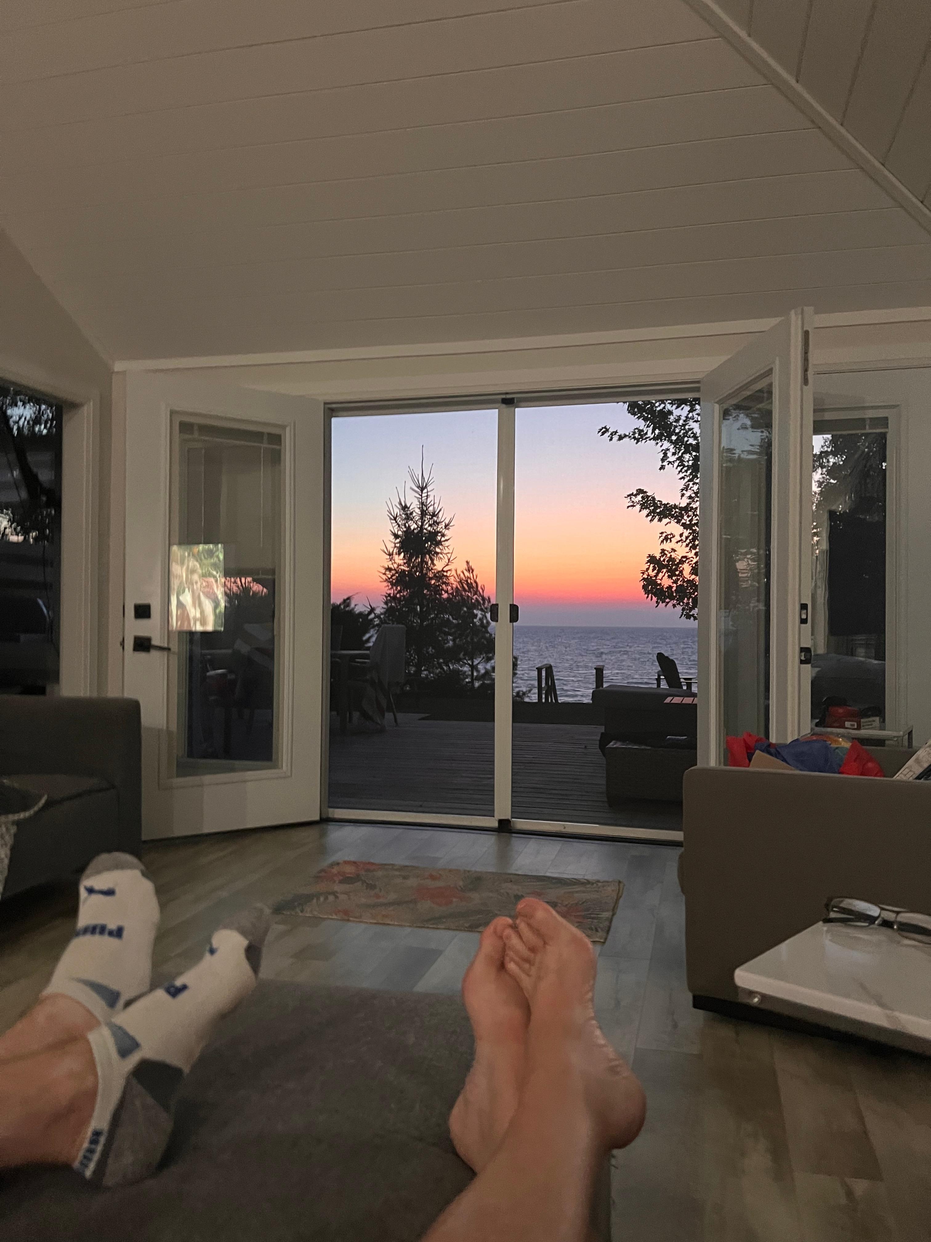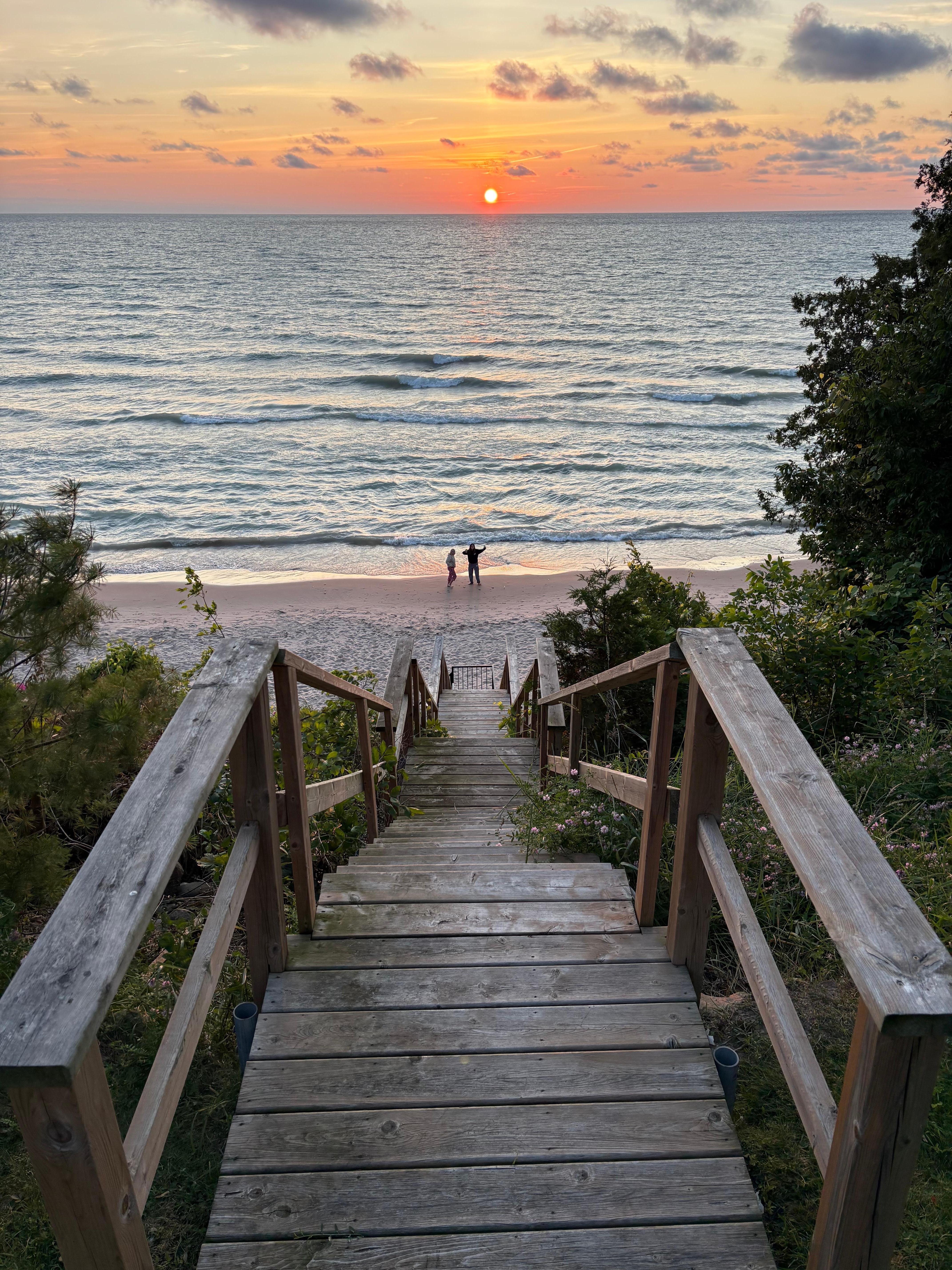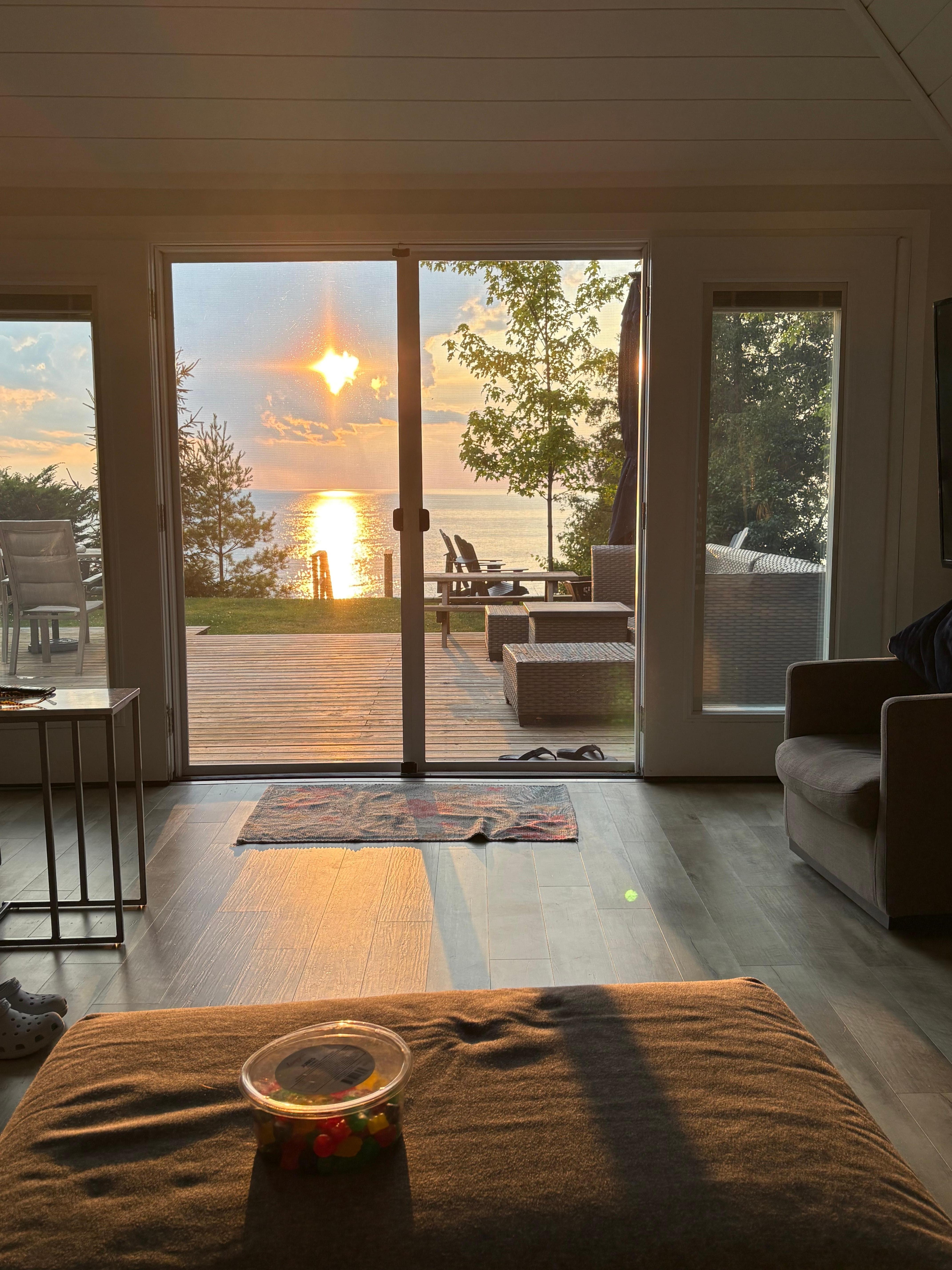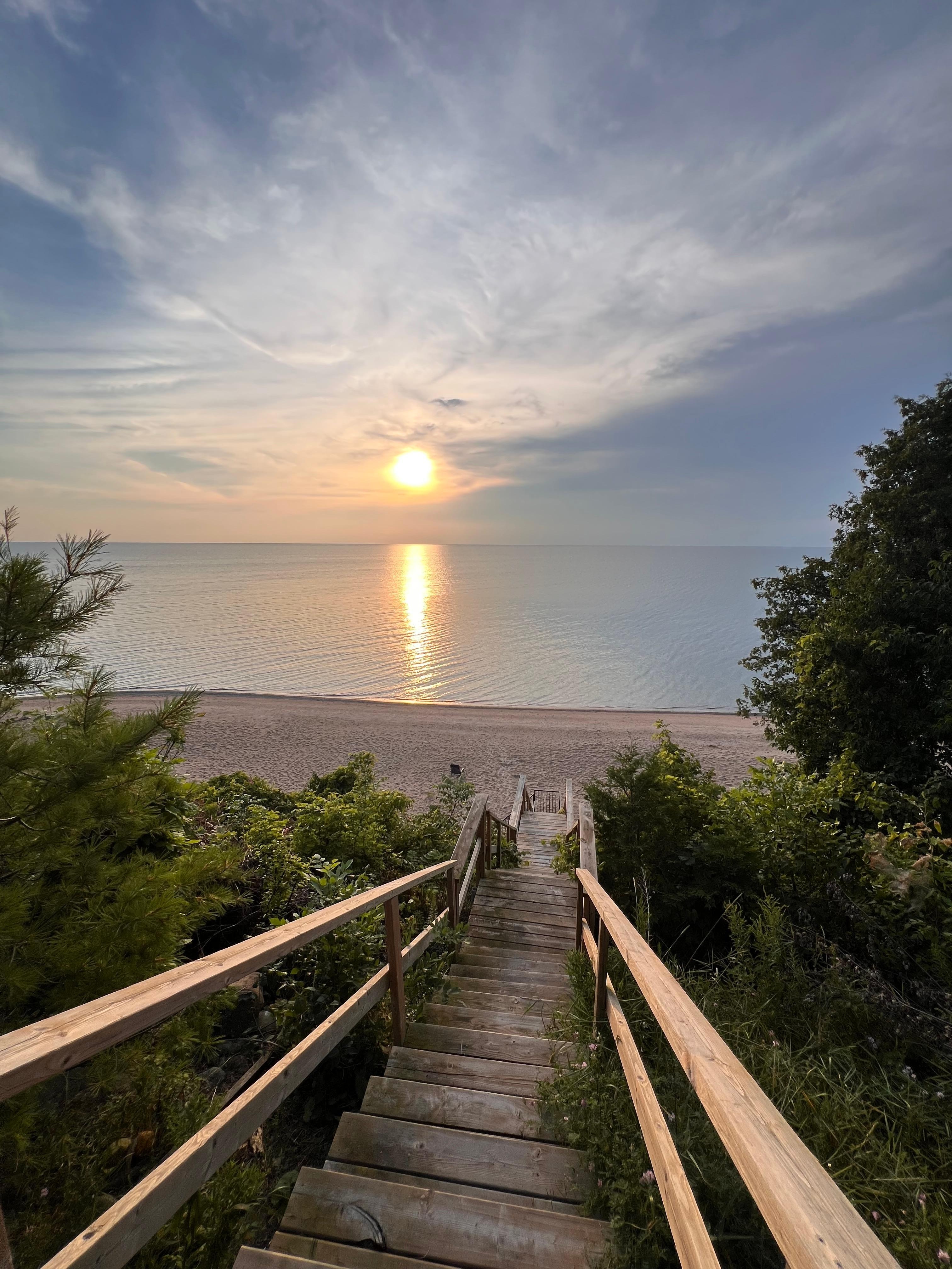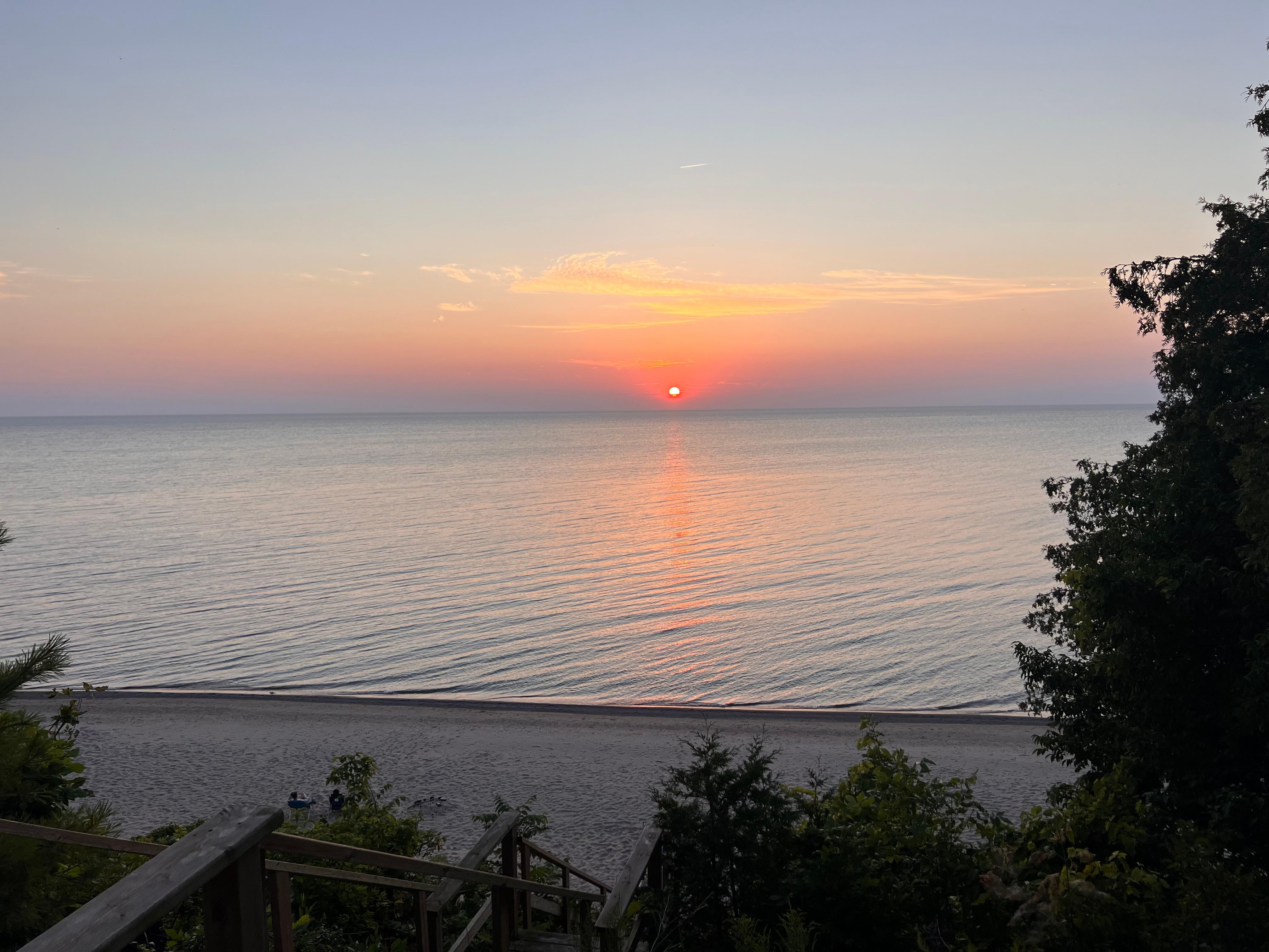 Enjoy picnics on the beach or dinners on our back deck while taking in the most beautiful sunsets. Our back deck includes a bbq and 6 person dining set. We are very lucky to still have a beach despite the higher than normal water levels this year. The beach changes everyday; from soft sand to pebbles depending on the currents and weather. There is always a shallow entry into the water, making it a great place for everyone to enjoy!