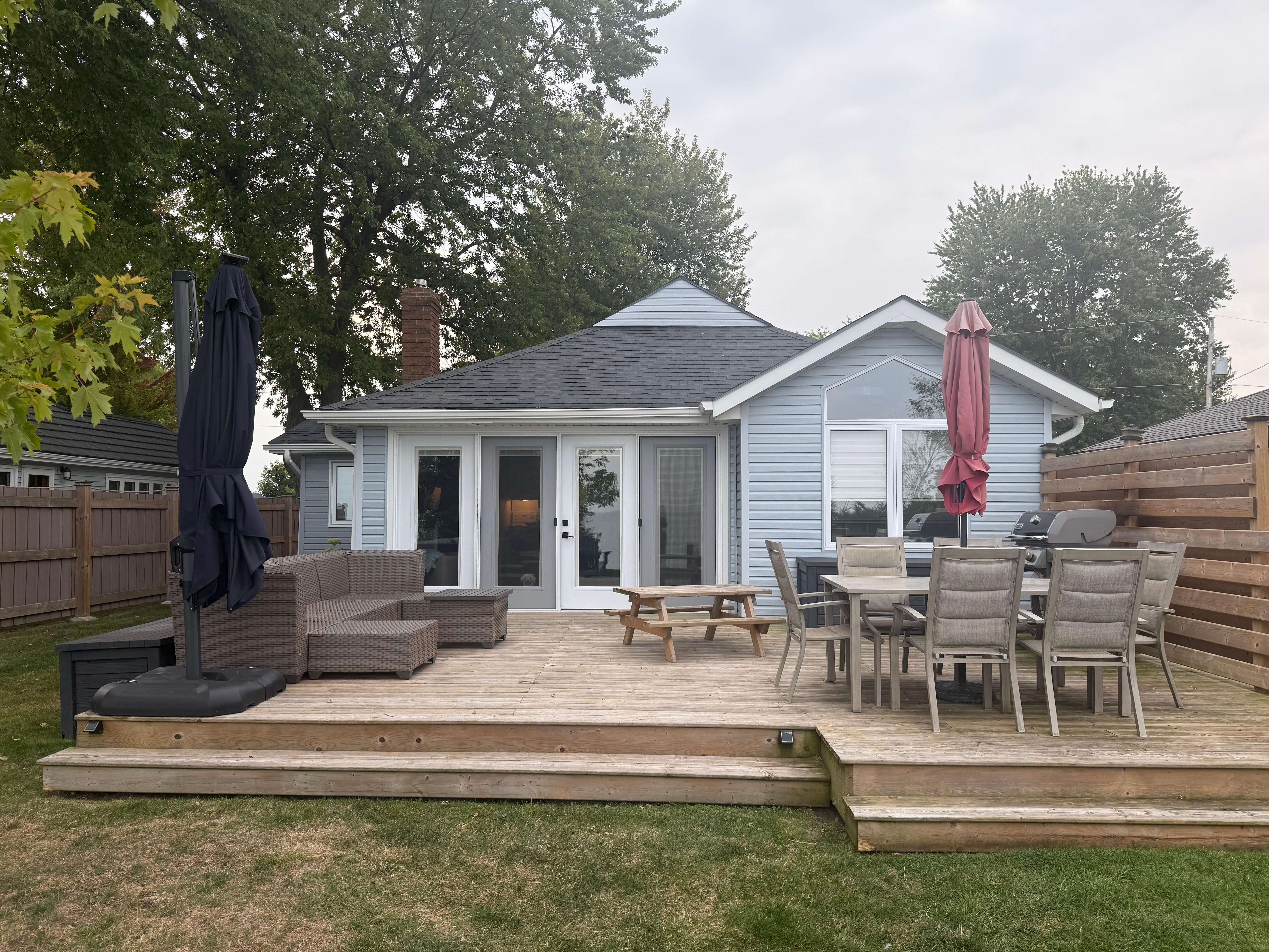 A well-maintained, 3-season cottage with 3 bedrooms, 1 bath and outdoor shower located five minutes north of beautiful Grand Bend and 10 minutes south of Bayfield. Private stairs to soft sandy beach just steps off the back deck.