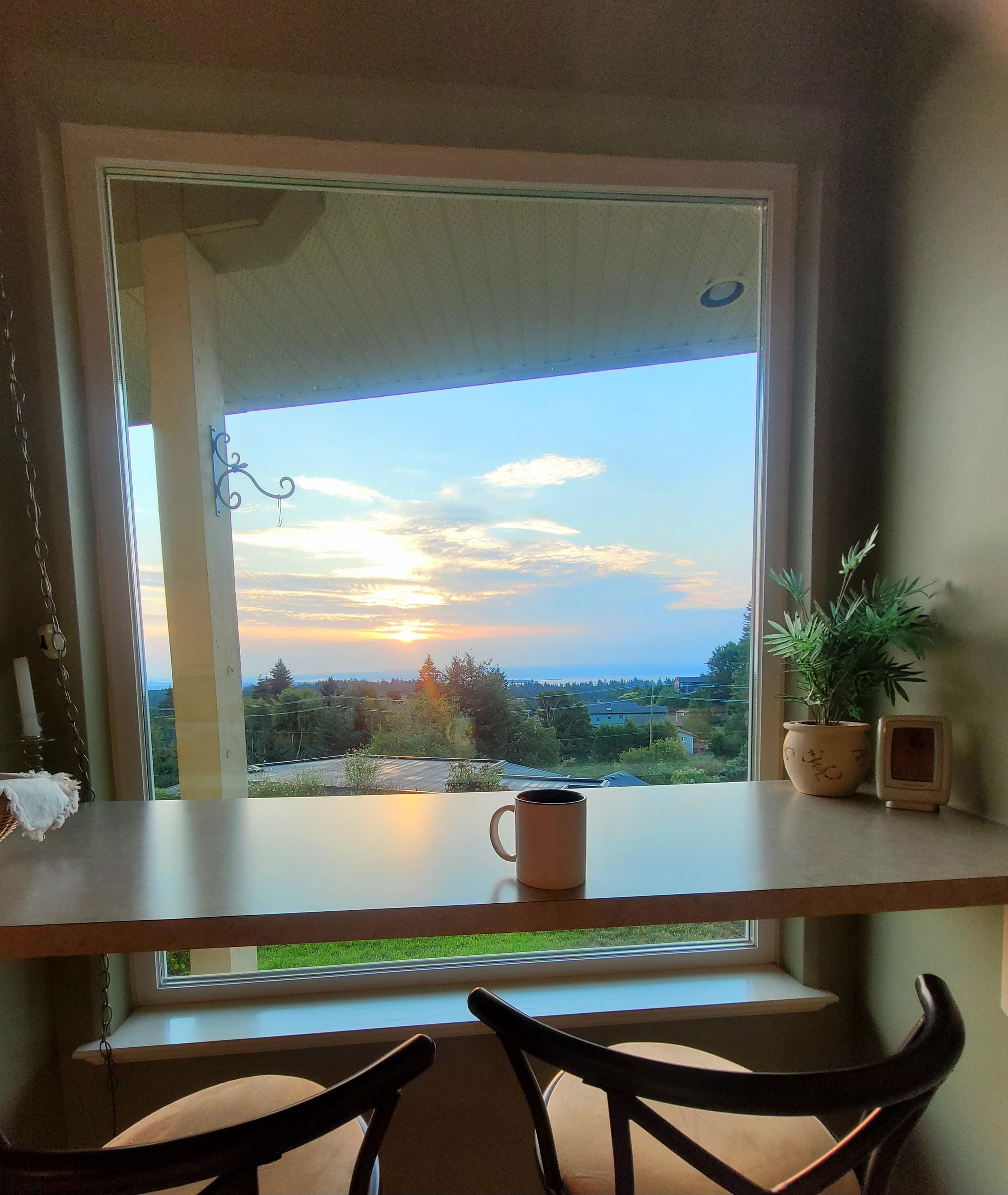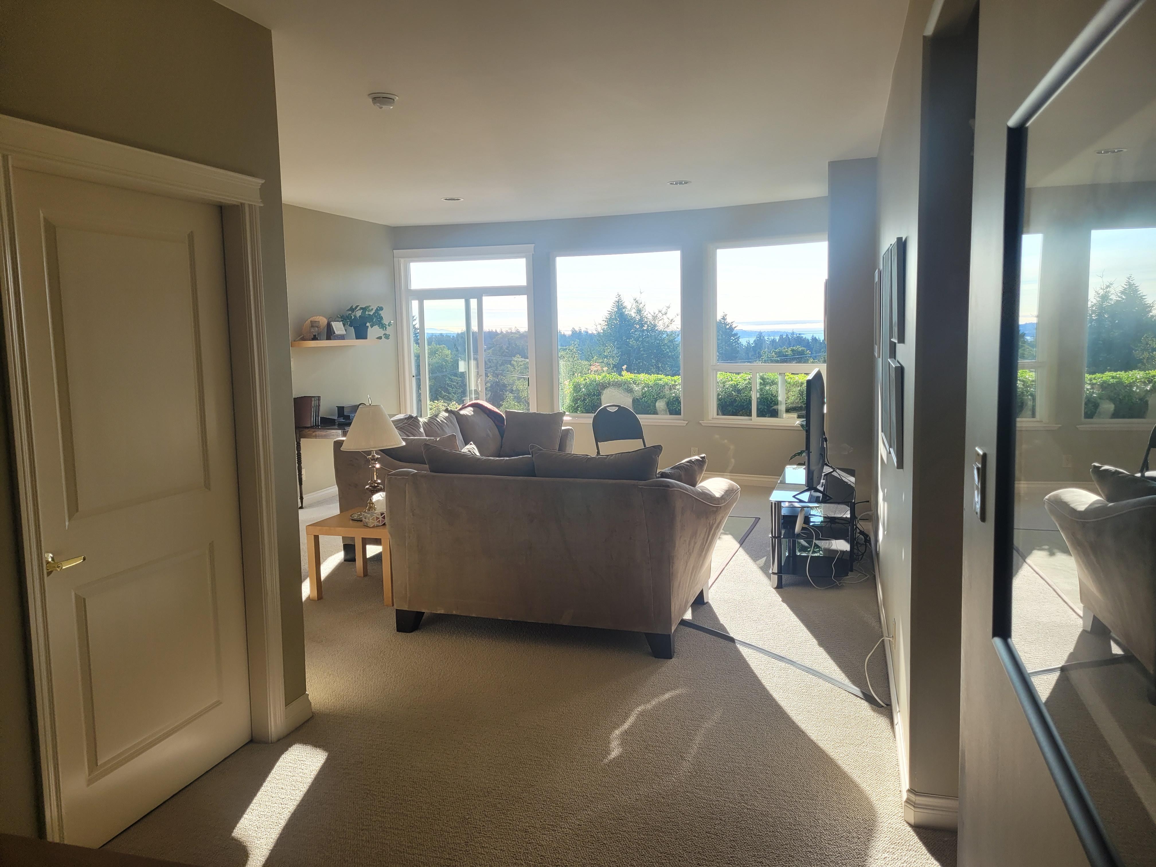 All the comforts of home are available with a well equipped kitchen with BBQ available, as well as washer and dryer and dishwasher, cable TV and a dedicated study area for any school or work related commitments. Bright sunny rooms with 9 foot ceilings and expansive windows give a marvelous view over the water to Victoria. Please no smoking and no pets in the suite or on the premises.