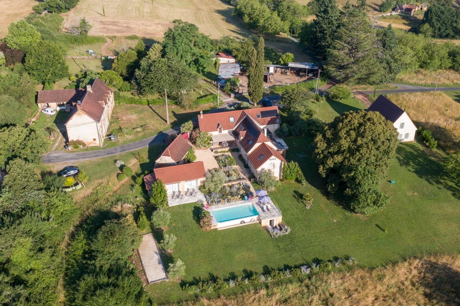5 mins from Sarlat, 15 from Montignac Lascaux and 20 from Les Eyzies (Vallée de l'Homme), very pretty house completely renovated with exceptional views, large "solarium" terrace and shaded area. Tiled swimming pool 10 by 5, private (security provided by reinforced cover). The house is composed of 2 bedrooms, bathroom, and a SAM-living room-kitchen area. It has TV, bluetooth "tour" channel and all the necessary equipment. Sheets and towels not provided. Owners possibly on site but at a distance.