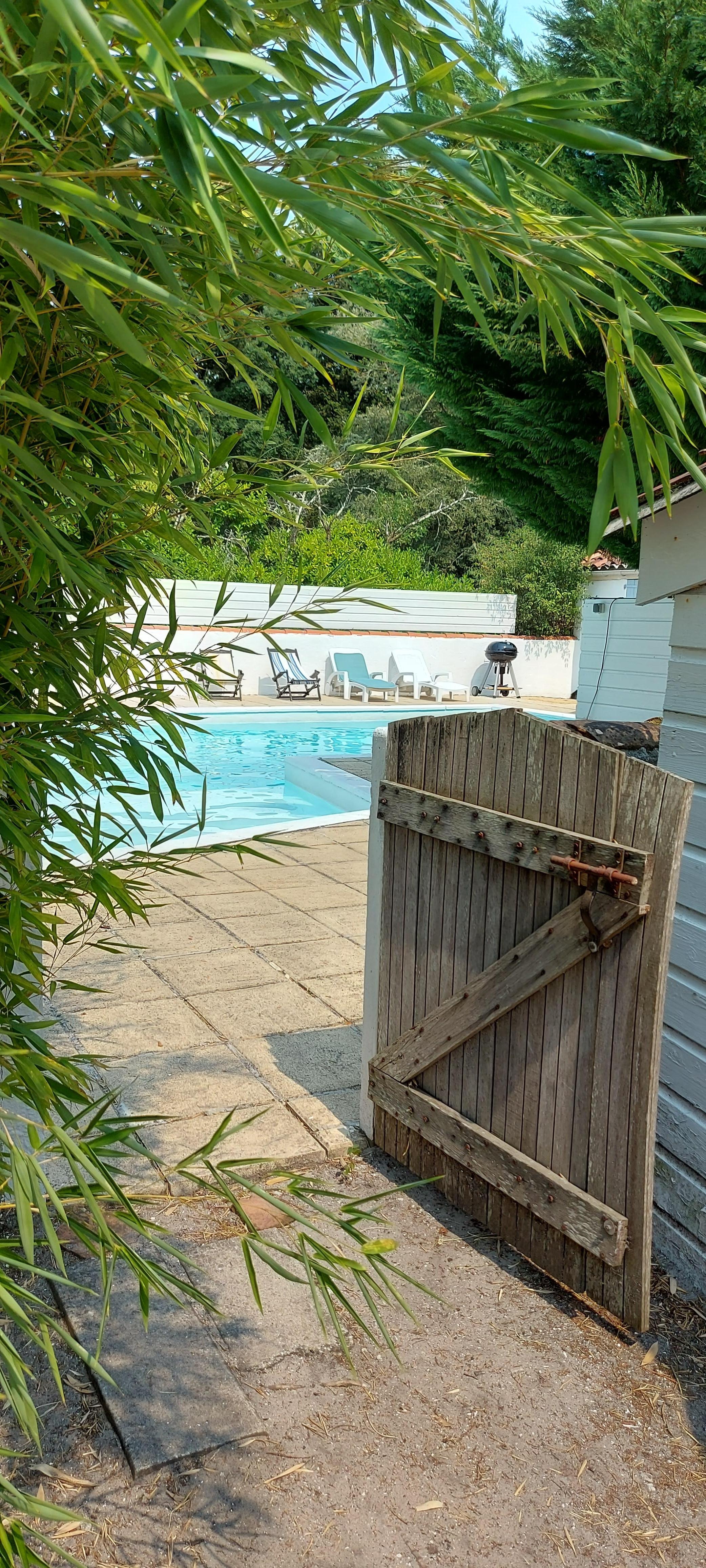 Delightful well equipped cottage. Ideal sitting around a private pool or as a base for discovering the Landes. Located 20 km from the beaches and lakes. The house and pool are closed and are in a large park where the owner of the house is 200m. Location quiet and safe. Ideal for a couple with two young children. Pet .Entretien the pool provided by the owner.