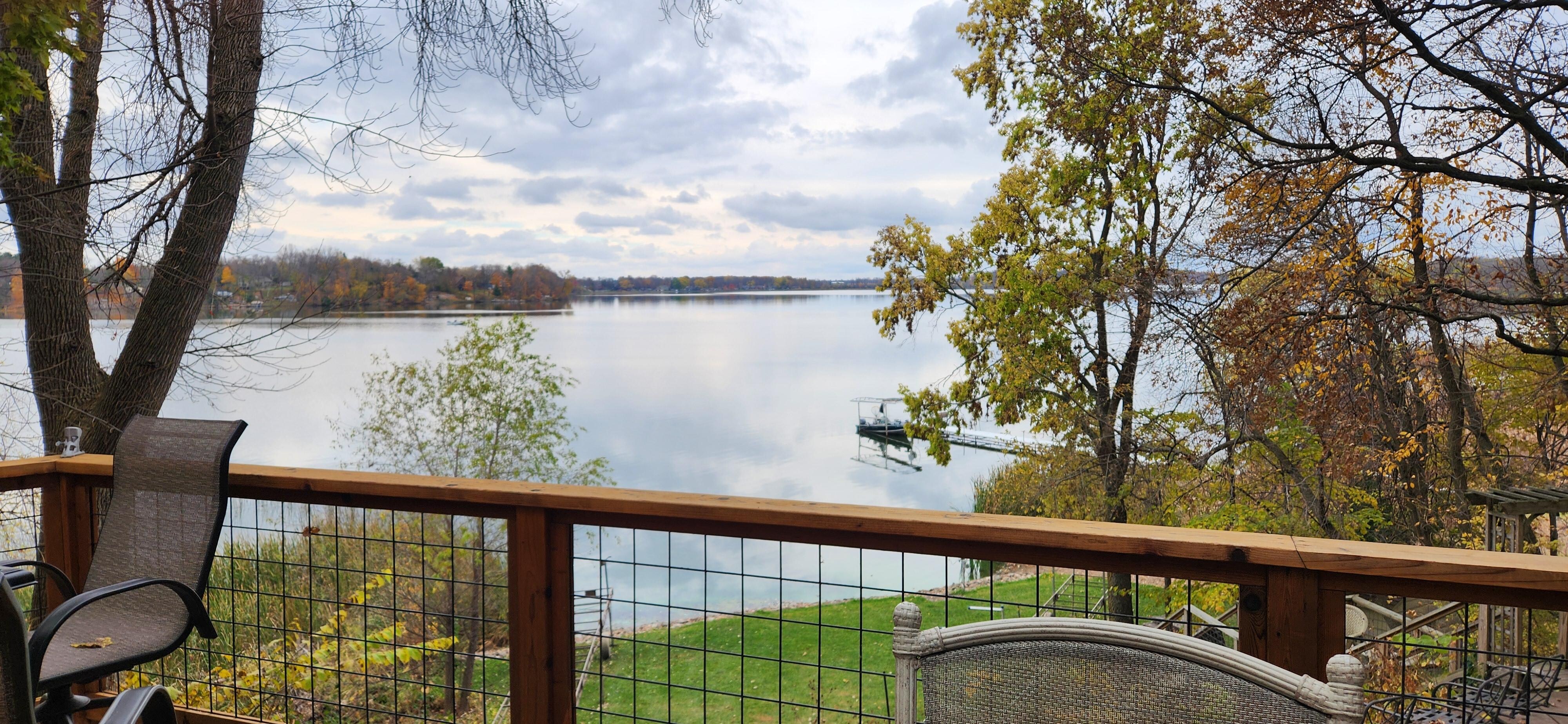 You can enjoy looking at the lake from the new deck off the main level or from the expansive patio below. We just added a "fire table" to the deck which has quickly become a special spot to enjoy the views. One of my favorite things is sitting with a cup of coffee on the second deck, the "sunrise" deck, aptly named for the view. A cozy fire pit on the patio is surrounded by comfy furniture for relaxing evenings and reminiscing. Listen to the loons and watch eagles soar overhead, wildlife abounds! The cabin is situated on part of a peninsula which adds more privacy and lake views. The neighborhood bar/restaurant, Grumpy Minnow, is a quick 5 min. boat ride around the bend or a 15 min. walk thru the neighborhood. Flickabird's is another lakeside bar/restaurant that is accessible thru the channel to East Rush Lake and a marina.