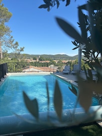 The property was as advertized. It was very clean and everything was in working order. The location is good with a great view of the town of Brignoles and the surrounding hills and mountains. It make for a good homebase, with easy access to the A8 autoroute and departmental roads as well. We were there for three weeks and made two sidetrips. A four day/3 nights trip to Arles, Nîmes, Pont du Gard, Orange, Chateauneuf du Pape and Avignon. Our second was a three day/2 nights trip to the Côte d’Azur. The pool is nice to look at, unfortunately it isn’t heated, although we understand that as owners we would be hesitant to provide this as well. Some residents would probably leave the heater on, resulting in important expenses for the owner. Better quality pillows would be appreciated as well. We did not meet the property caretakers, but they were easy to reach and returned our messages promptly. We highly recommend this house.