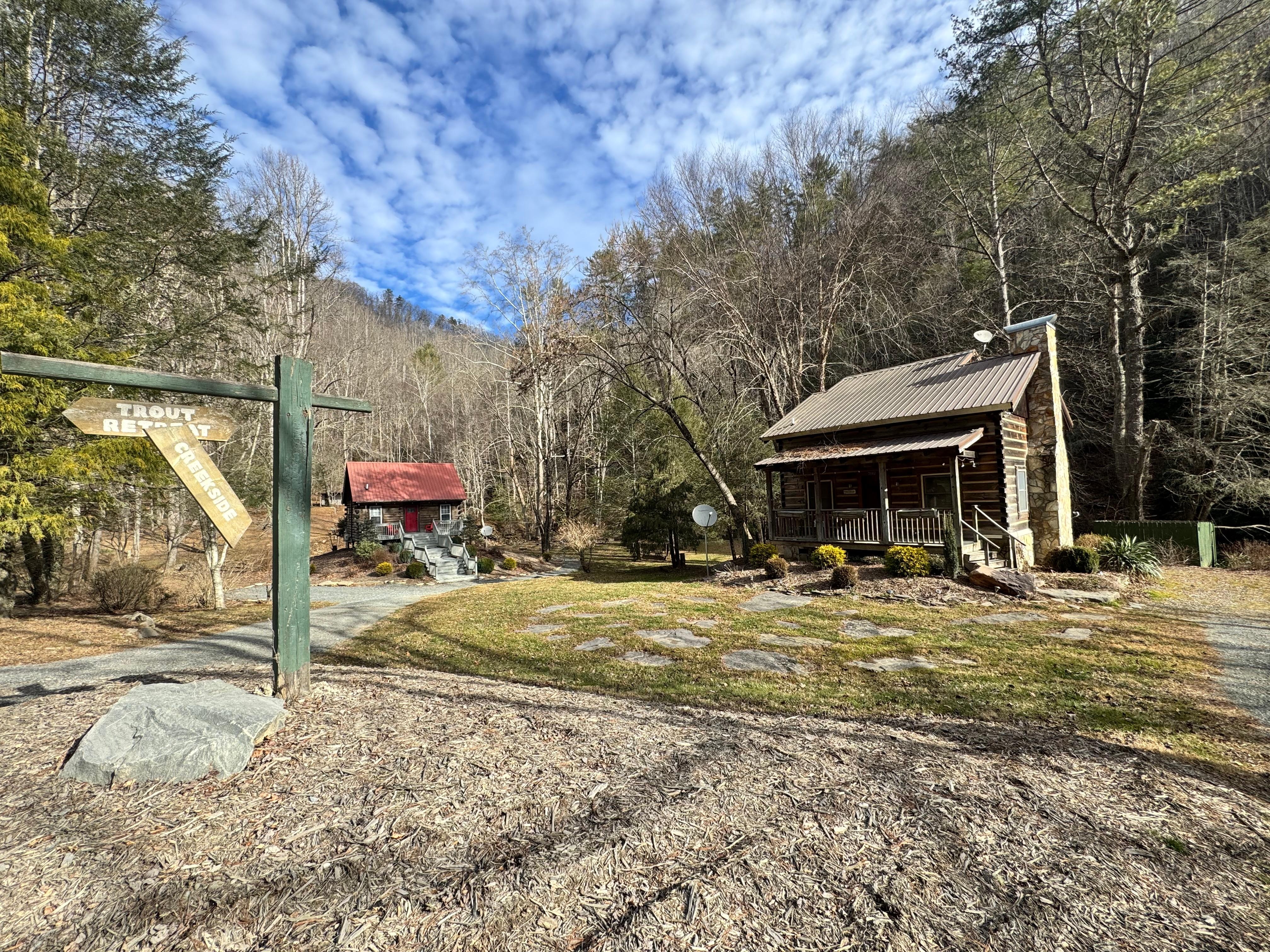 The Trout Retreat cabin sleeps up to four with a king bed, upstairs and a sleeper sofa downstairs, two full baths, and a full kitchen and includes all the utensils, linens, and towels necessary to make your stay comfortable. The cabin also has a large screened porch and a deck with a BRAND NEW 17 Jet hot tub that overlooks the stream and picnic tables where you can have a unique dining experience or simply sit and relax to the sights and sounds of the stream. The Hot Tub also has a PRIVACY lattice wall with romantic lighting . All BRAND new kitchen appliance’s also a gas fireplace to create a warm and cozy atmosphere on those cool mountain evenings. This cabin offers privacy although there is another smaller cabin on the property with easy access in a setting that is unique and picturesque. WEEKLY RENTALS AVAILABLE AT A DISCOUNTED RATE!!!!