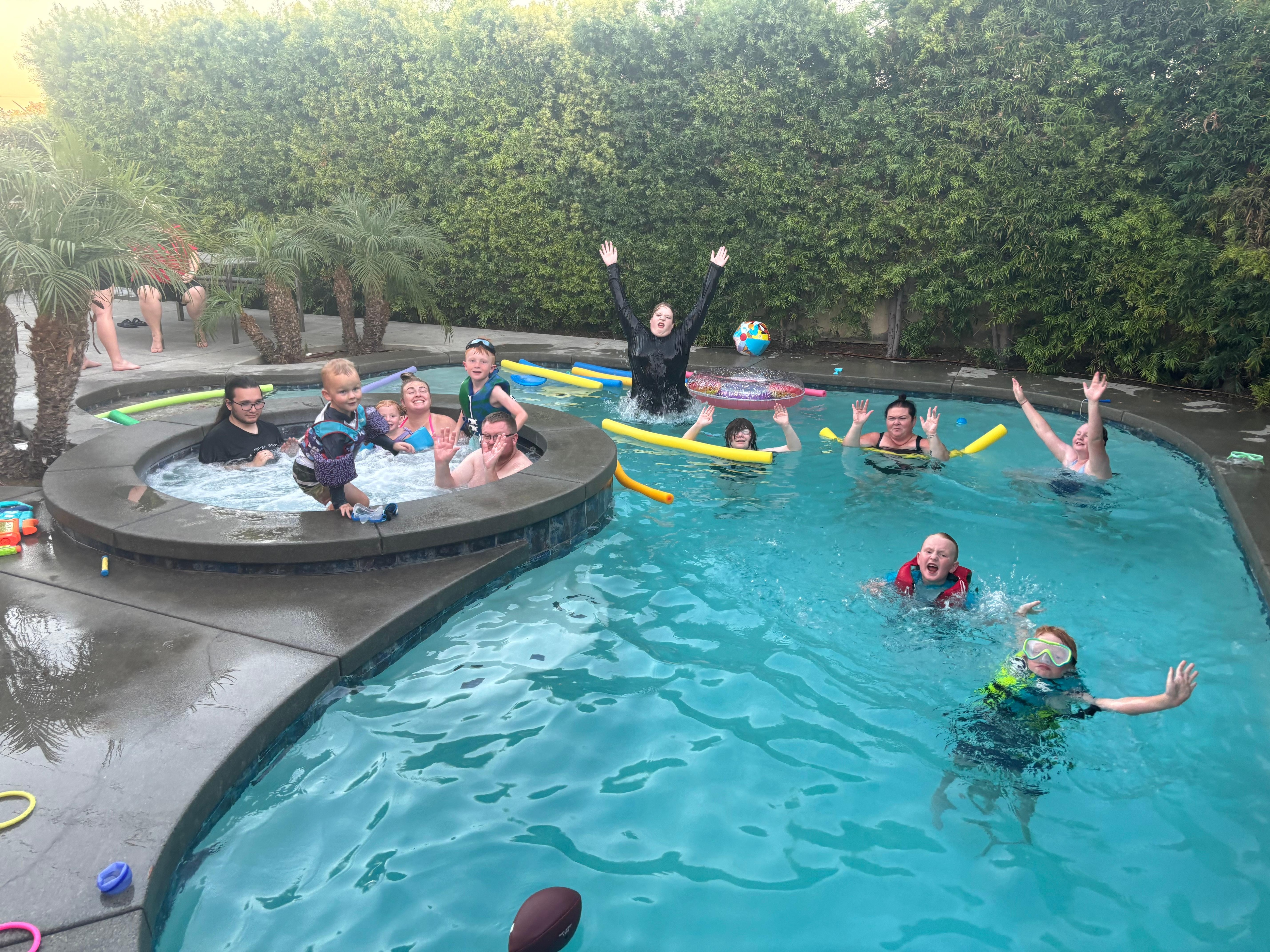Stroll through the French doors off the dining room to enjoy the fabulous Southern California weather in our sunny backyard. We built a brand new pool with an in-ground spa. The pool was designed to be kid friendly – has a super shallow entry area and a 2nd shallow baja step area which both lead to a 3.5’ flat side of the pool - there’s only a small deep area. It’s also ozone filtered - so much easier on little (and big) eyes, hair and skin :) The house is fully fenced off from the backyard with a self-closing MagnaLatch gate for safety and can be heated. In the pool area we also have an outdoor dining table, a BBQ and play structure for the littlest ones.