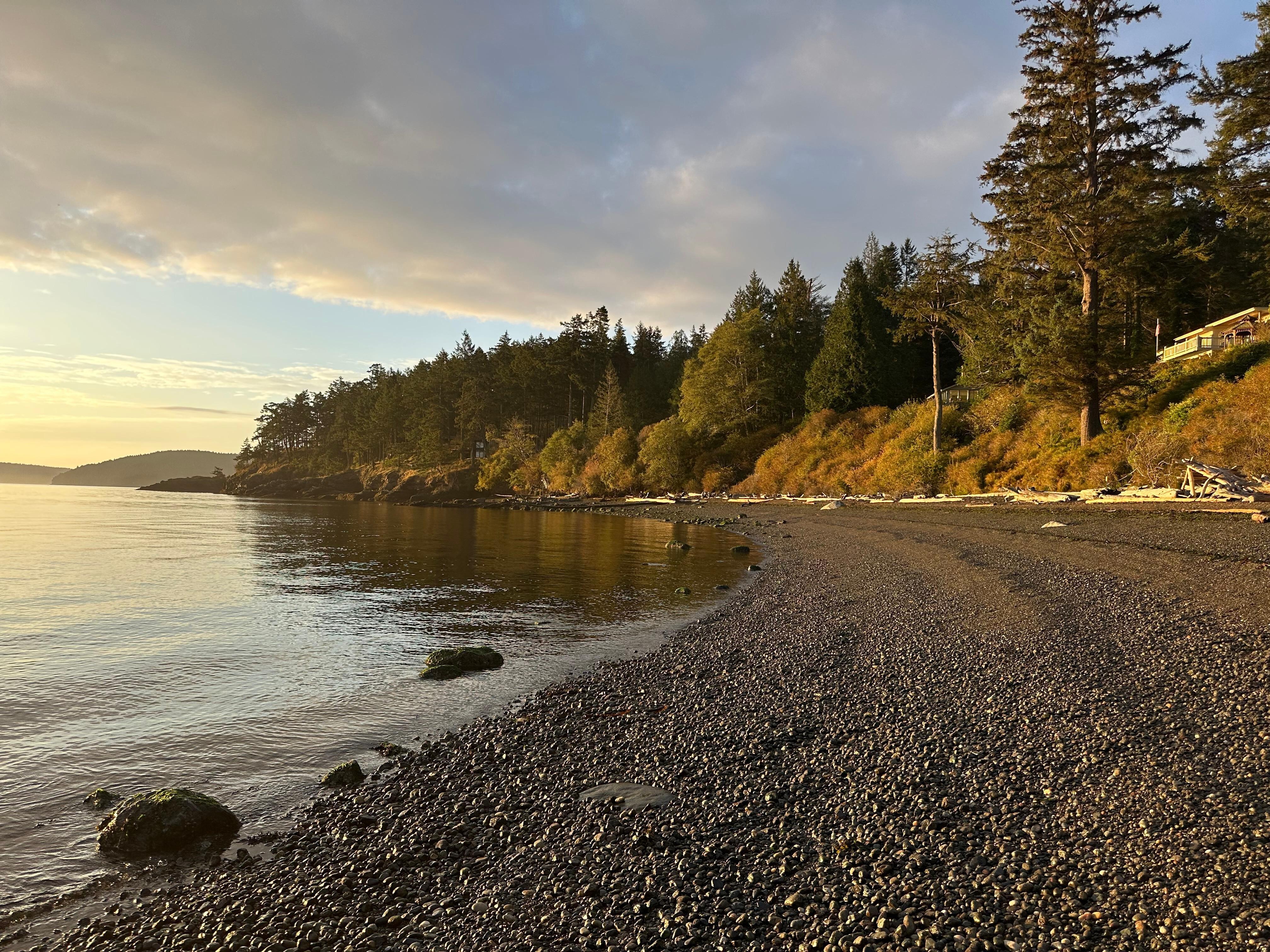 Whether you are relaxing on the large deck, lined with Adirondack chairs, or sitting in the cozy living room, you will enjoy panoramic views of San Juan Channel including Orcas and Shaw Islands with Mt. Baker in the background. San Juan Channel is a great spot for watching all kinds of vessels pass by. You may even see an occasional transient orca swim past the shoreline. Walk down the stairs to a wide, secluded, ever-changing beach. Picturesque colors during sunsets and sunrises are not to be missed. You will leave feeling refreshed from your island getaway.