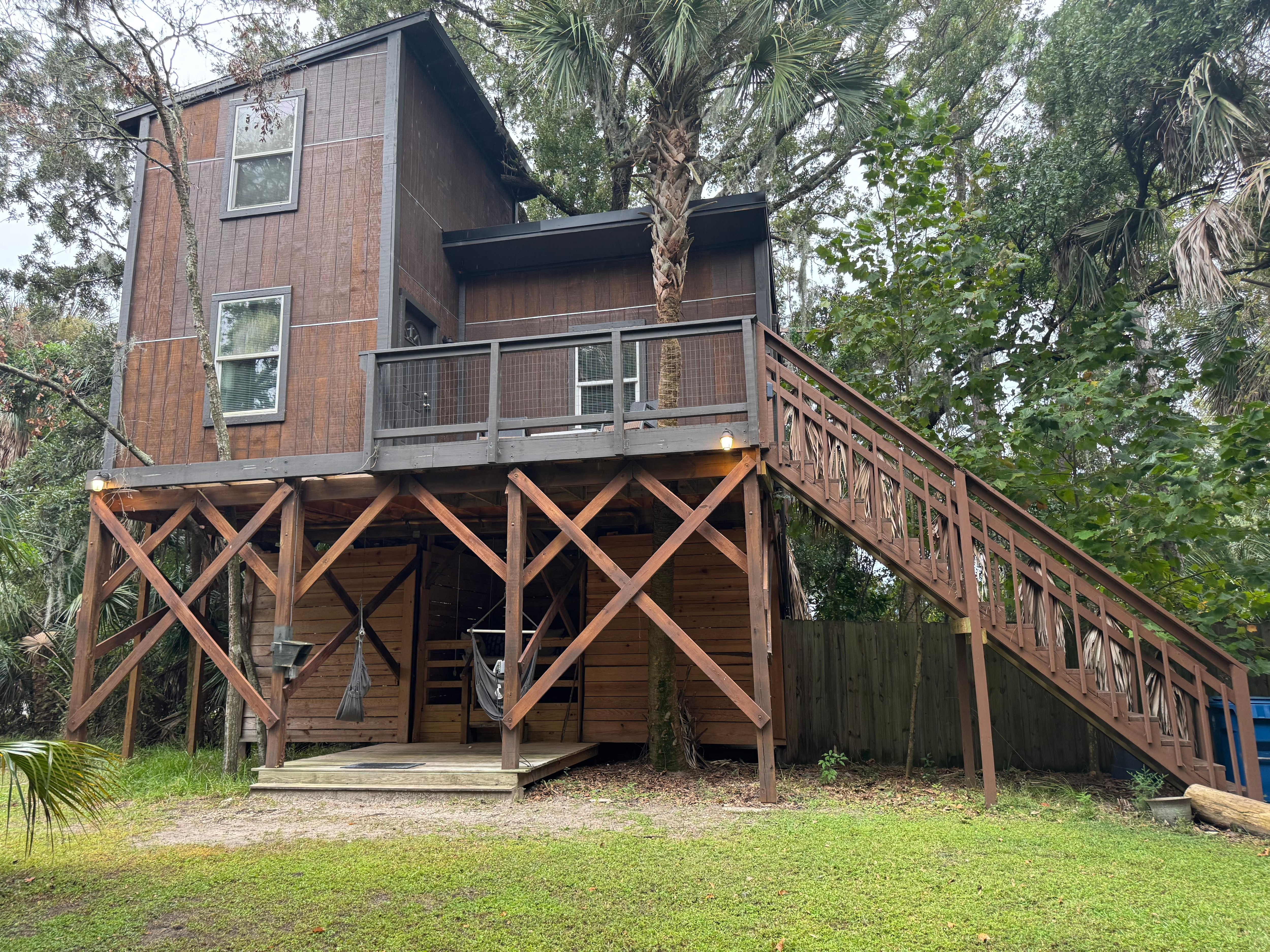 (Accesible by car) (vrbo uses AI labeling for photo captions and can be incorrect) Our property is located on one of the many islands located within the Timucuan Ecological Preserve and has been branded as the North Florida Keys. The Hideaway was just recently remodeled with modern taste and simple design to ensure that our guests feel comfortable in every aspect of their stay. All renovations were also completed using environmentally friendly and repurposed materials where possible, while maintaining quality craftsmanship. The space has one bedroom, kitchen, and living room as well as a bathroom. The house also sits on a large lot so our guests can bring their boats or pwc’s to enjoy the local waters. It is a private space, provides private parking, a partially fenced yard and lots of wildlife!