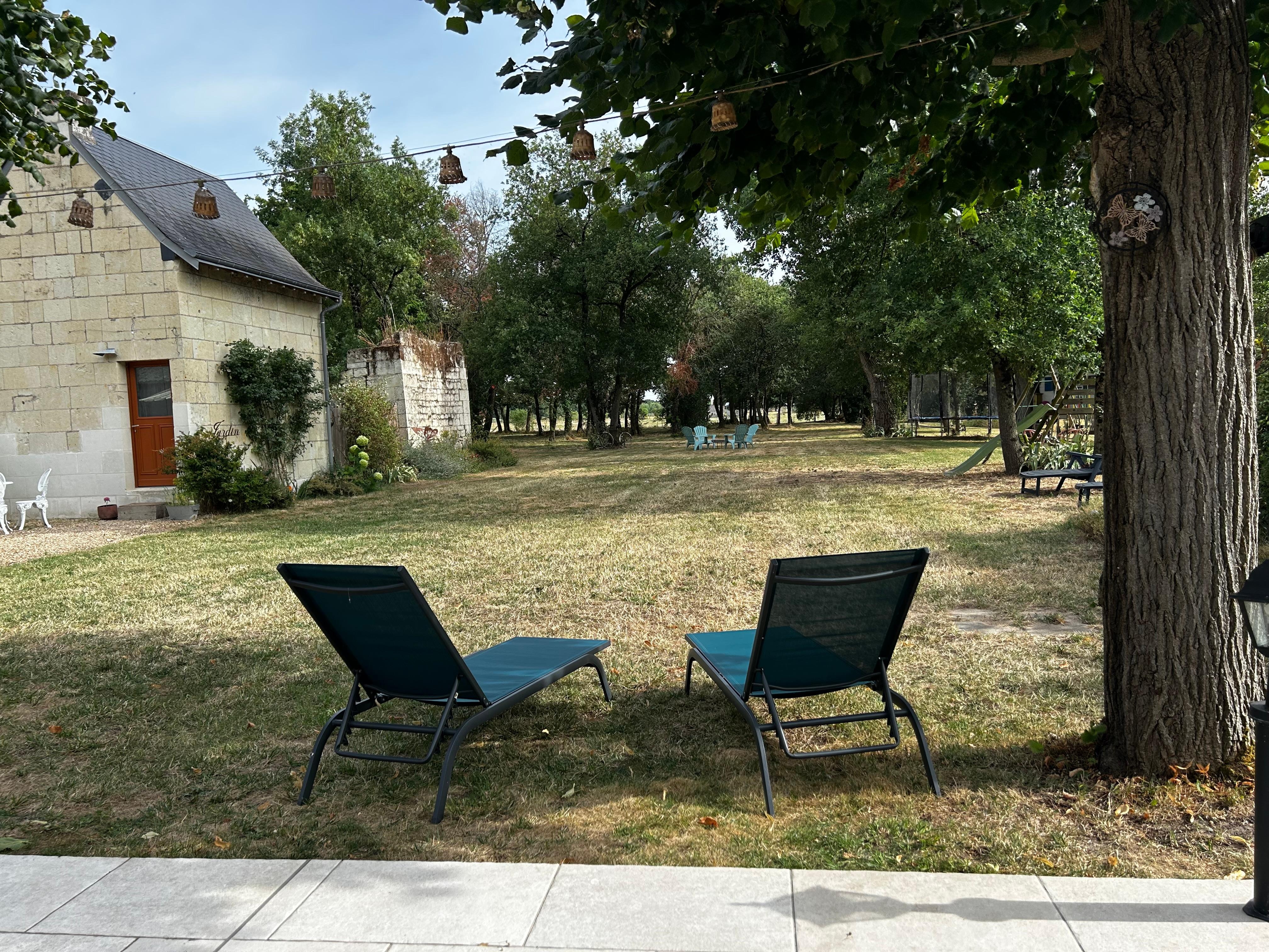 Enjoy a moment of well-being on the south-facing terrace, with its garden equipment and magnificent view of the wooded park. The Gîte's barbecue and vegetable garden will be your allies for gourmet meals. Several areas invite you to enjoy the garden: summer lounge by the trampoline, siesta in the hammock or natural lounge by the Indre river.