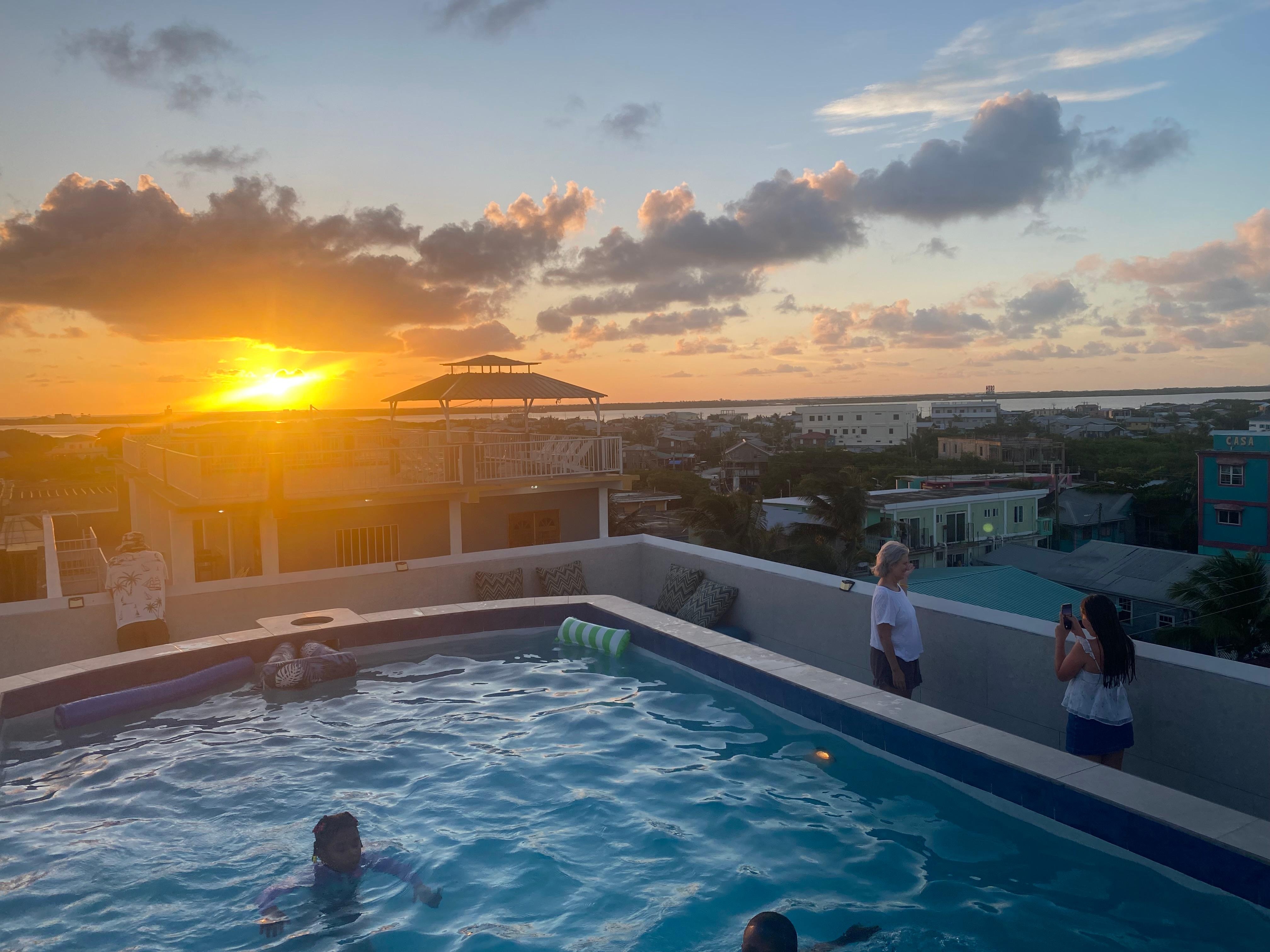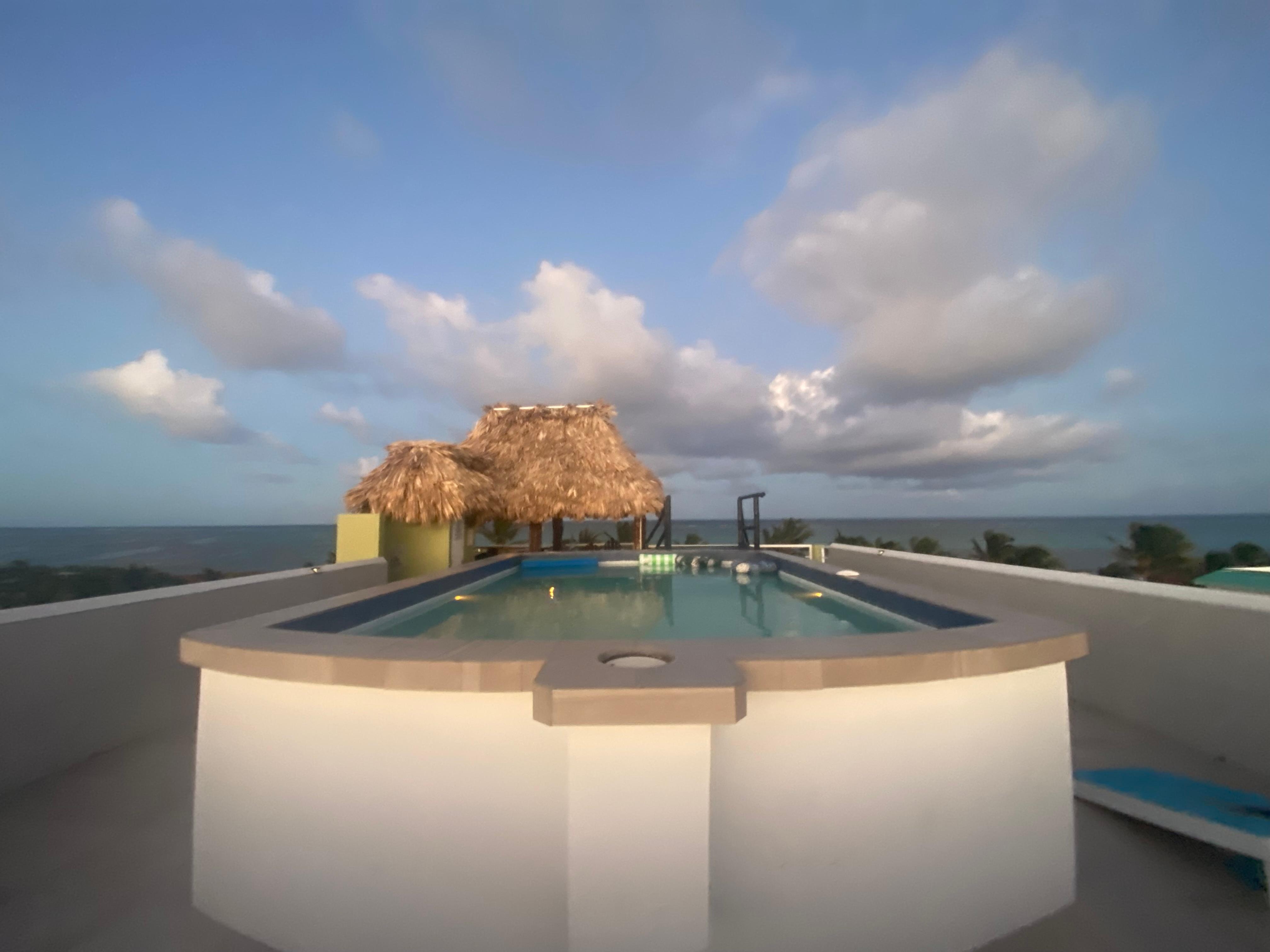 We are conveniently located in the sought after Boca del Rio district in the town of San Pedro. During your stay enjoy the beautiful view of the ocean and the Great Barrier Reef from the roof top palapa/pool lounge area. You will also experience spectacular sunrise and sunset views from the rooftop lounge or your private front/back deck.