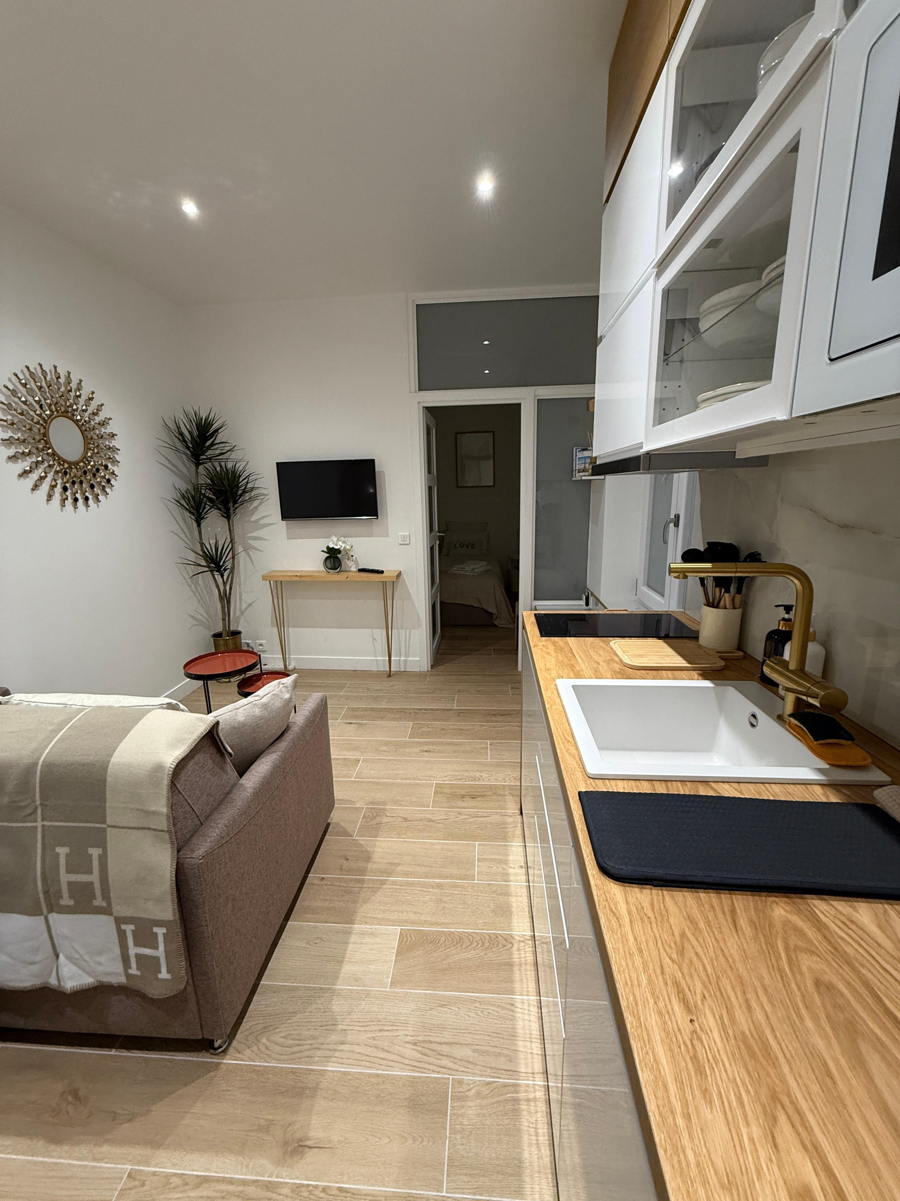 Recently refurbished and fully equipped, you will be at home during your stay. This one bedroom apartment to accommodate up to 3 people with a sofa to be converted into a large single bed (120 x 200) in the living room. The calm is remarkable because the apartment is at the bottom of the corridor which separates it, by 2 courtyards, from the lively street.