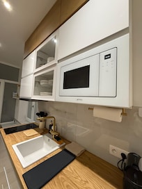 Wifi, TV, washing machine, iron and ironing board, small dishwasher and fridge, hob and microwave oven, kettle or Nespresso coffee machine, toaster ... everything is there to simplify you daily life.