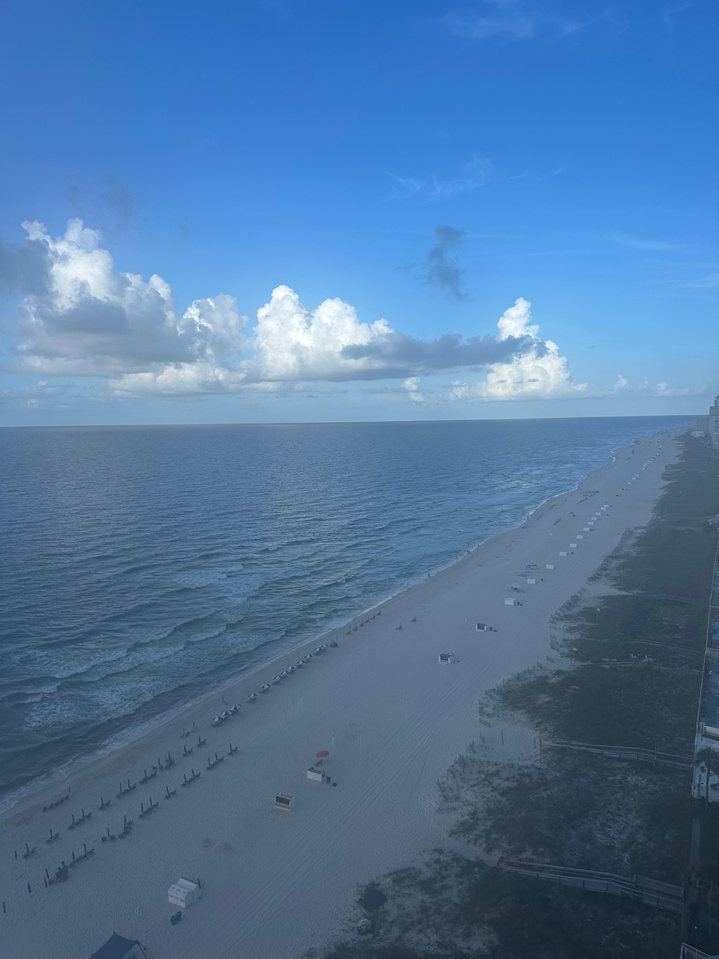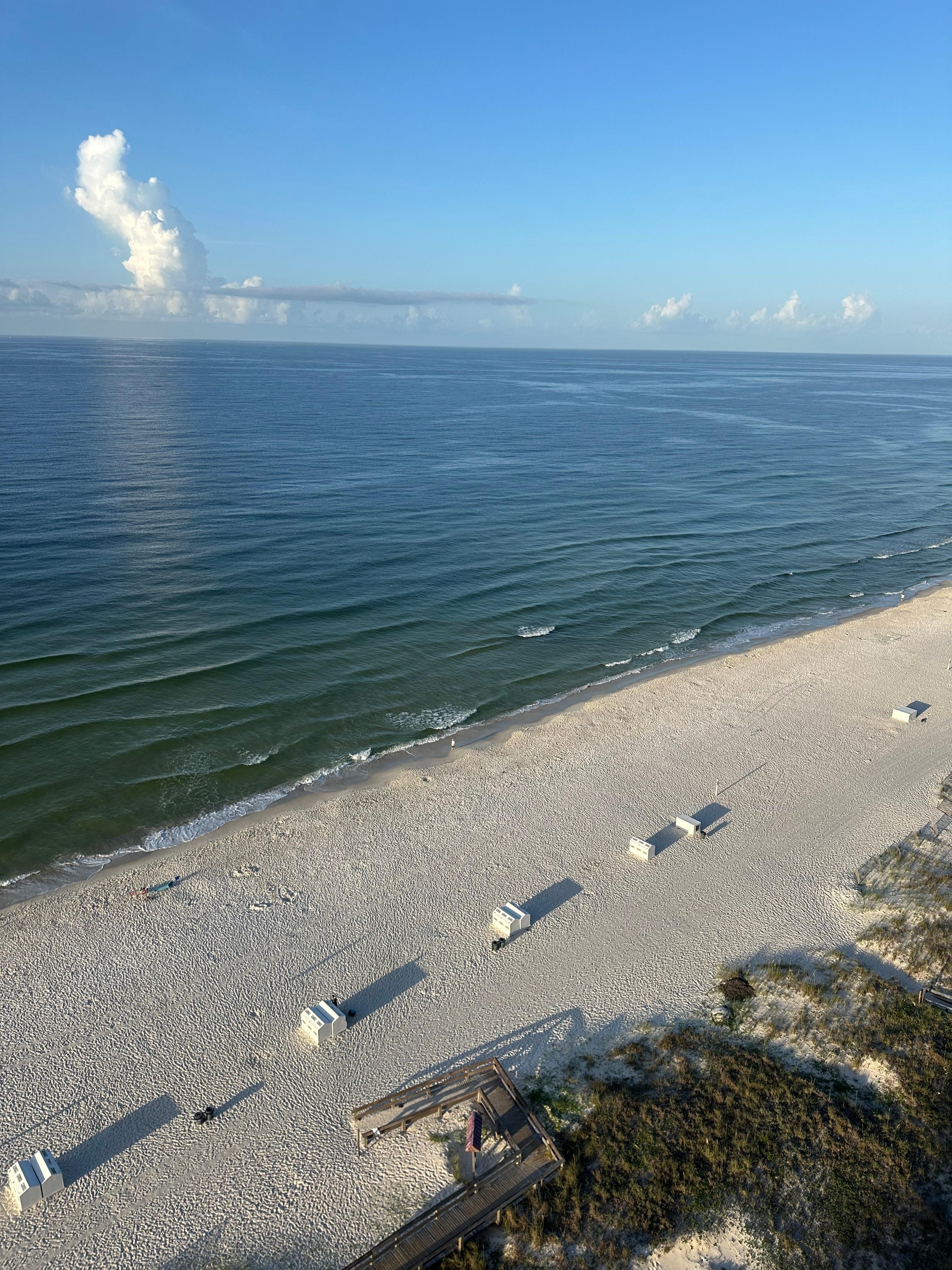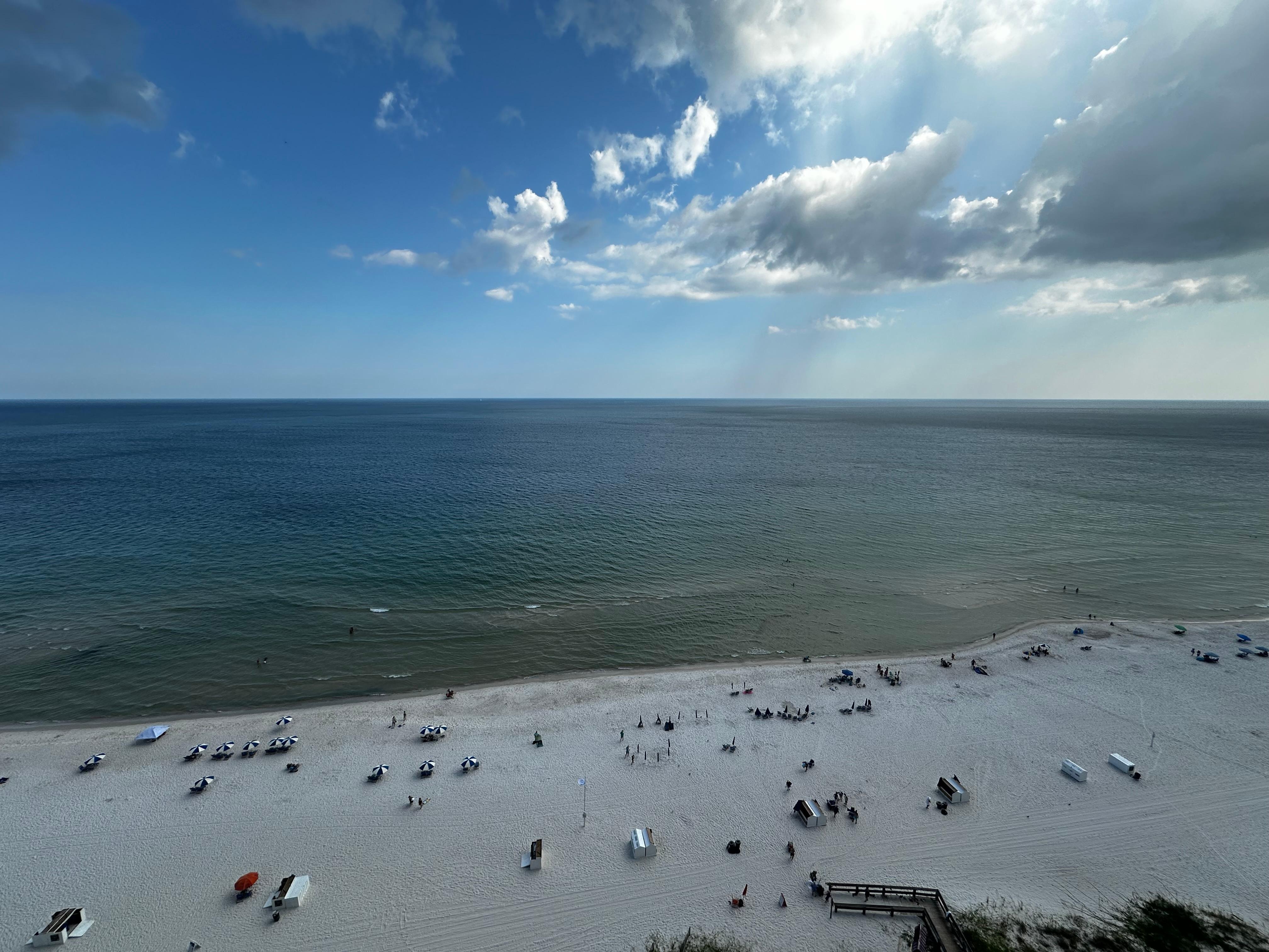 Phoenix Orange Beach 1606 not only has impeccable interiors but it offers jaw dropping views too! Our condo is perfectly situated on the prized East corner, 16th floor with incredible panoramic views of the Gulf from floor to ceiling windows throughout the unit and directly overlooking the Phoenix Orange Beach Lazy River. Enjoy sunrises and sunsets from the spacious balcony with 3 chaise lounges and outdoor dining for 6.
