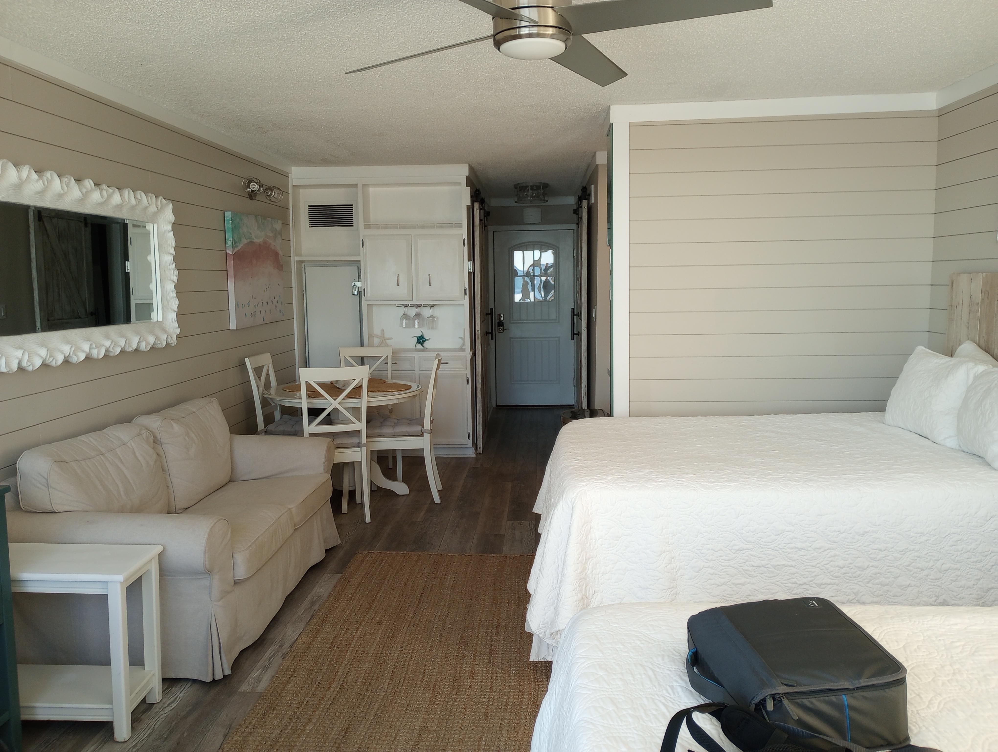 This clean and cozy beachfront studio is thoughtfully updated and designed for comfort after a day in the sun.