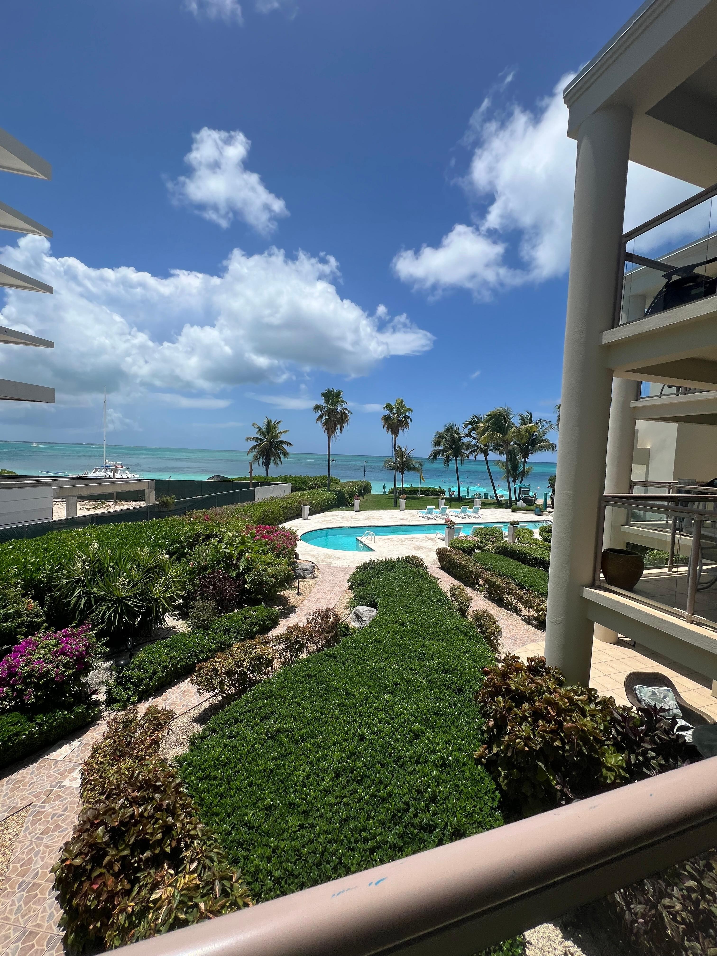 This 2nd floor Coral Gardens condo is located on the islands best snorkel reef, this is an UPDATED 1050 sq, OCEAN FRONT SUITE directly on Grace Bay Beach, with a spacious balcony and sunset views of the beach, ocean, and island. This suite has a fully equipped modern kitchen, living room, powder room and bedroom with King bed and en suite bathroom with shower, as well as pullout couch (sleeps 2). DEVELOPER MANAGED GUEST SERVICES OFFICE ONSITE...If you book with us you get complimentary 2 x 20 min de-stress massages on a 7 night minimum stay.