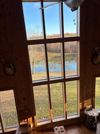 The Whippoorwill Cabin is a unique getaway unlike any other cabin rental or B&B that you have visited in the past. The cabin is situated on the rolling hills of a forty-acre farm perched above a large fish pond that offers scenic water views out of the open great room. We are located about 10 minutes north of Mt. Airy off of Highway 103.