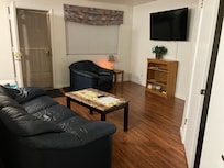 fully furnished 1 bedroom plus den condo 1 bathroom,with walk in shower,full size stackable washer and dryer in bathroom,full kitchen,with basic utensils,den has twin bed ,queen bed in a bedroom. 43 inch internet tv ina bedroom[plutotv,etc included,58 android powered,google tv in a living room,and all local tv channels over the air about 95 channels,elevator about 15 feet away from front door,1 assigned parking space#410 covered. JAN-MARCH I ONLY RENT FULL MONTHS.Internet IS NOT FOR GAMING .