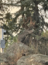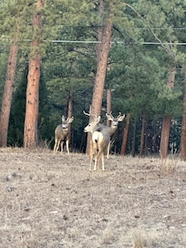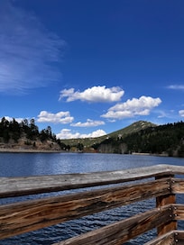 Ponderosa Mountain Home is just a short walk to ice skating and ice fishing in winter, boating and fishing in summer. It is also a short walk/drive to downtown Evergreen! Come enjoy this beautiful area with ample outdoor activities, fine restaurants and the greatest brew pubs in the world. Easy access to Red Rocks Amphitheatre, taverns and clubs featuring local musicians, outstanding dramatic theater, even first-rate opera and ballet. Outdoor sports are incomparable. For summer, just step outside your door. Or the Mt. Evans Wilderness is just a short drive. Rocky Mountain National Park is two hours away on the scenic Peak-to-Peak Highway. Winter is a wonderland, a doorway to world-class skiing, snowshoeing, and climbing. The Ponderosa Mountain Home has 3 bedrooms. The master suite has a sitting room and queen-size bed with adjustable mattress. The second bedroom has a full mattress, also adjustable. The third bedroom has a day bed with a trundle. Well-behaved dogs are very welcome but while outdoors they must be on a leash at all times. It is to safeguard your pet(s) and the local wildlife, who really are our premier guests.