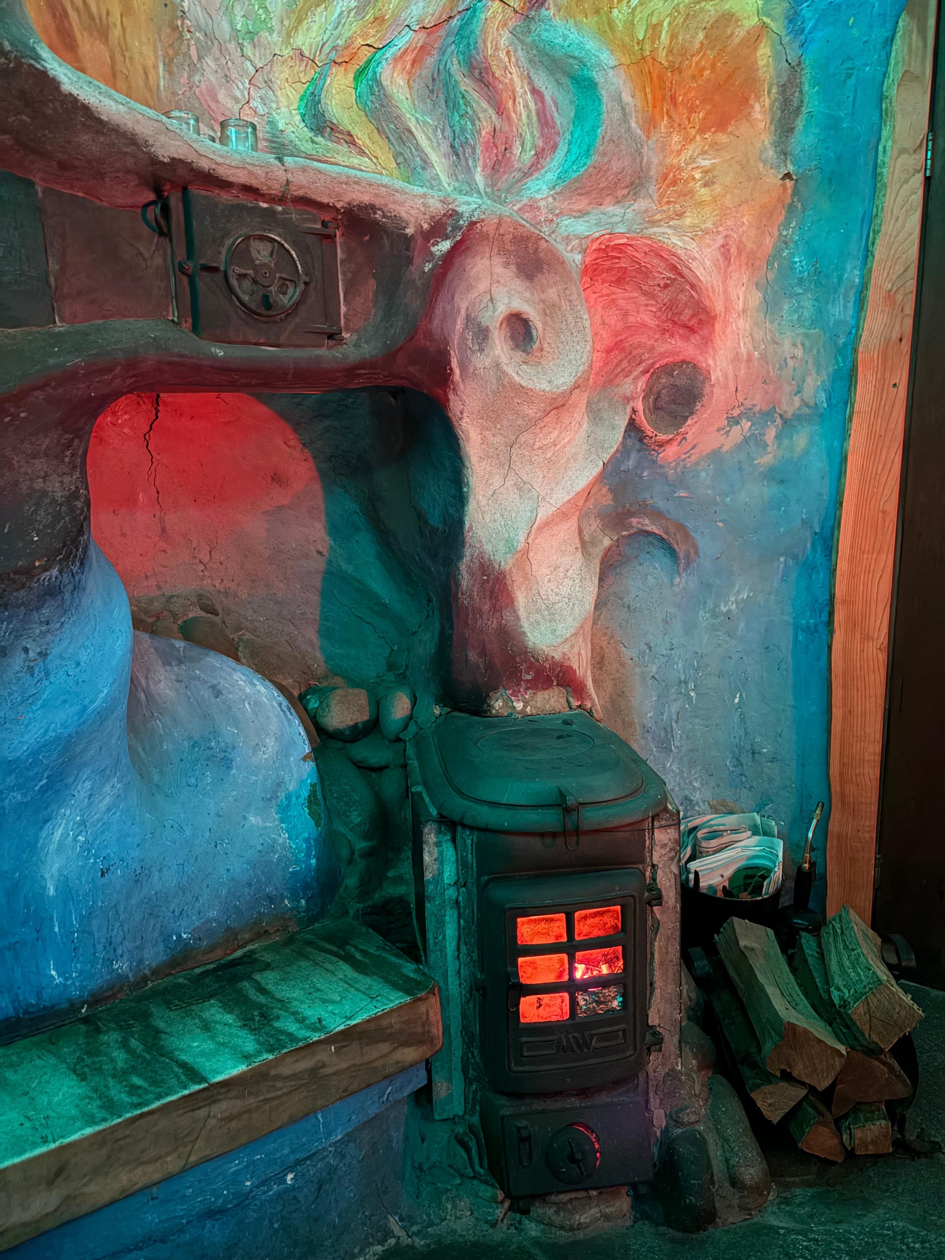 This rugged 9 acre property has walking trails, mountain views, gardens, apple orchard and many examples of handcrafted, sculptural homes and structures.