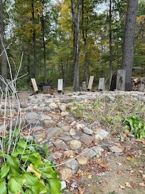 Please, do not attempt to move picnic tables. The chairs around the fire ring may be moved anywhere within reason except to your home. Do not play, walk, or allow children to play on the stone wall along the front of the property. Do not move or remove any stones from said wall. It was one of my last labors of love prior to my back surgery and as you can imagine took quite some time and energy.