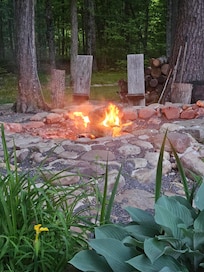Bonfires are welcome, there is enough wood in the log holder for a weekend. Please, be reasonable with your fires and use of wood. Make sure your fire is extinguished before you leave or before you retire for the evening. If there is a burn ban in effect, we will apprise you of that situation upon your arrival. We encourage you to pick up any sticks lying about on the property and place them in the fire ring, thank you.