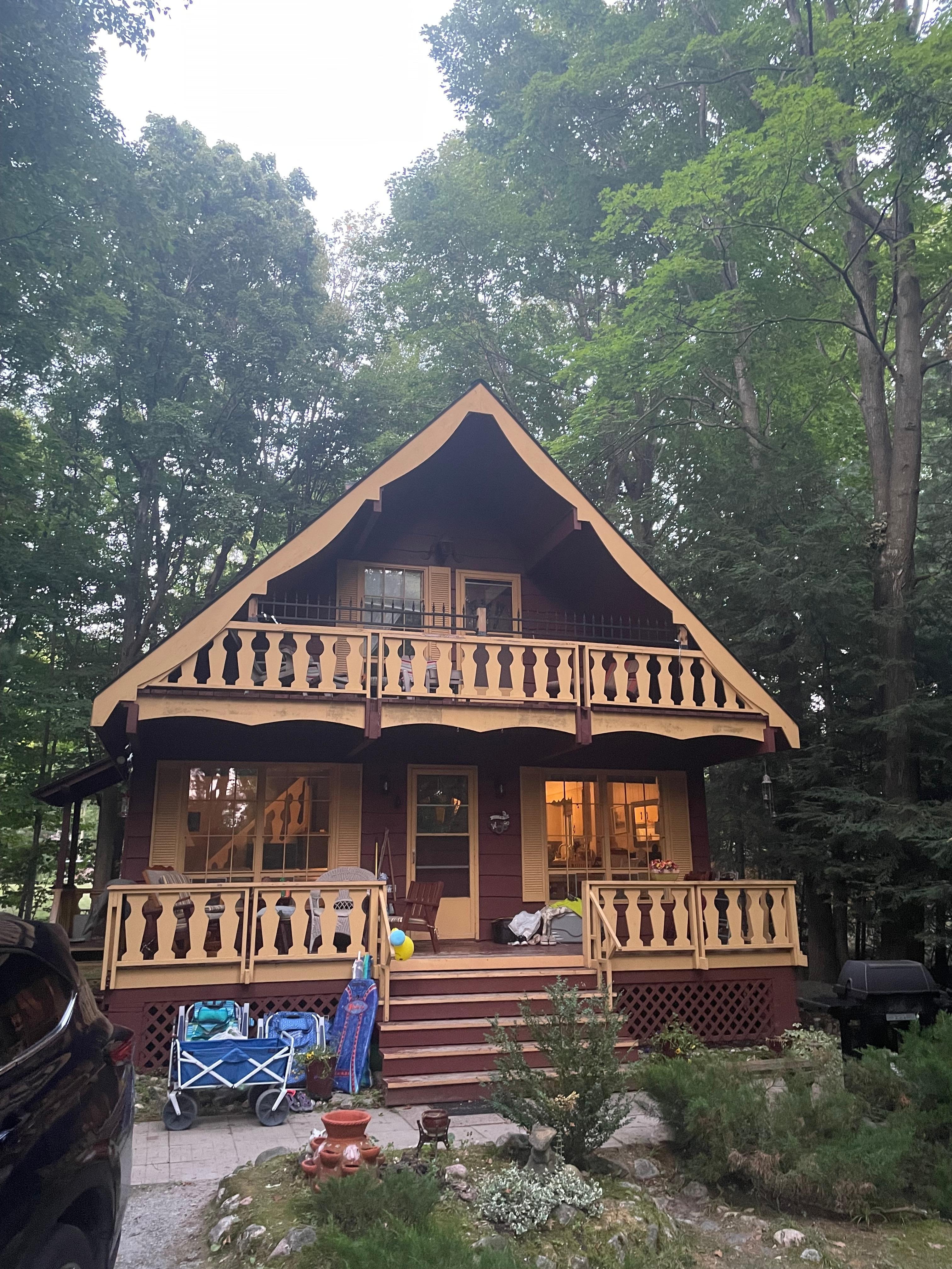 1 & 3/4 hours from Toronto, this charming chalet style 3 bedroom cottage is nestled on a beautiful treed lot. A 3 minute stroll to a private, sandy beach with clear water. 2 other beaches nearby. The cottage feels very private but not isolated. Open-concept kitchen, dining area and living room. Dishwasher. 2 queen beds and 1 double bed. Pillows and blankets provided. 2 washrooms, one with shower & tub. Washer and dryer. Air conditioning and heating and electric fireplace. Well stocked kitchen with many utensils, dishes, and pots and pans. Fridge, stove, microwave, toaster, coffee maker & grinder, kettle, air popper, blender, and slow cooker. Basic spices and condiments, hand and dish soap are provided. The municipal water is excellent for drinking. BBQ and outdoor dining and seating areas. Chaise lounges, tables and chairs for reading/napping under the trees. Beach chairs, umbrellas, wagon, beach toys and water shoes provided. Unlimited Wi-fi. Smart TV, DVD, Stereo, books and games. There are 2 decks: one off the upper front bedroom for quiet times and the other off the living room for dining and relaxing. Firepit in the back yard for roasting marshmallows and making s'mores, or simply relax and enjoy the stars. 4 bicycles to explore the beach roads and hiking trails.