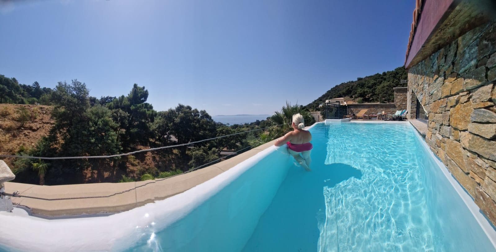 This villa has a magnificent infinity pool and a beautiful sea view on the Ile du Levant is a 10-minute walk from Canadel beach.