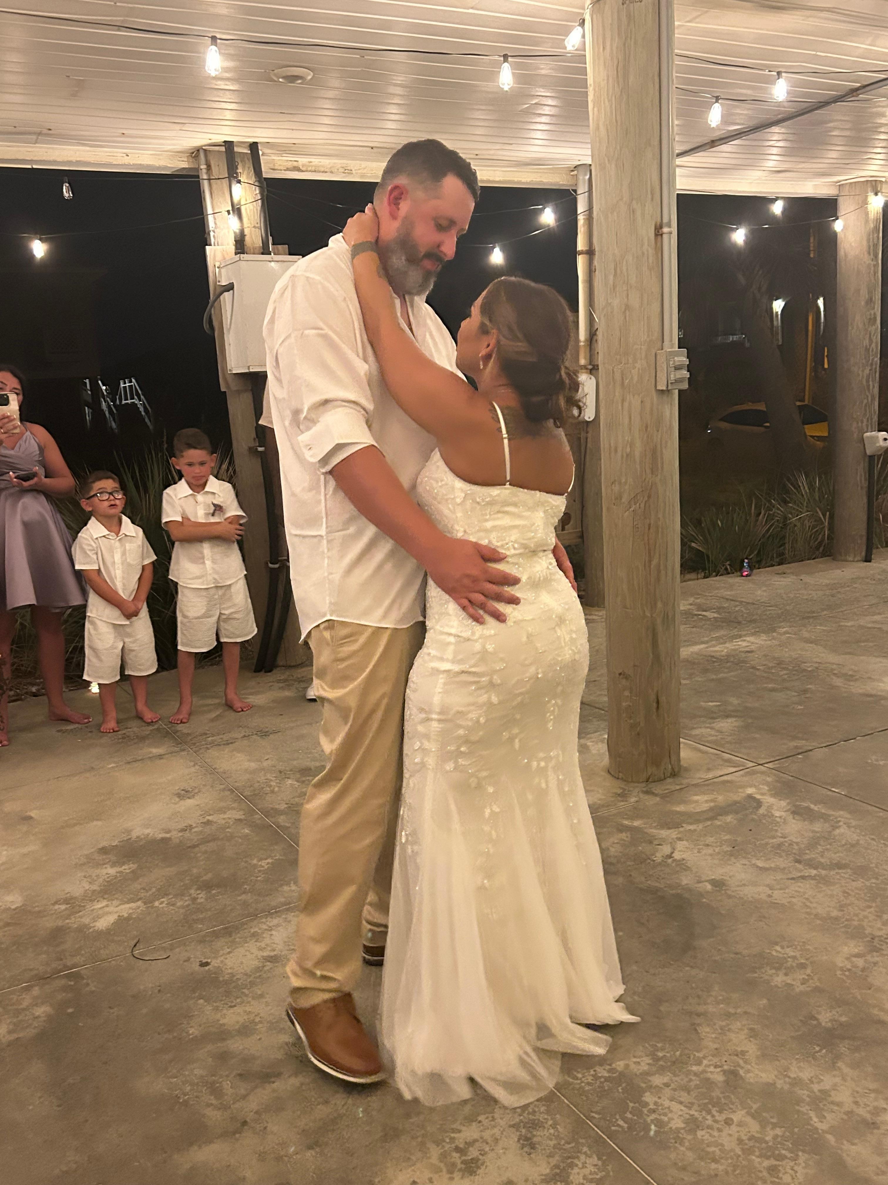 The home’s first floor provides ample covered parking for you and your guests. When you enter, you’ll instantly arrive on the second floor. An open floor plan hosts the living room, with large windows that overlook the Gulf, allowing for plenty of natural light and picturesque views. Granite countertops, stainless steel appliances, and a blue-tiled backsplash make preparing meals in the kitchen a delight.