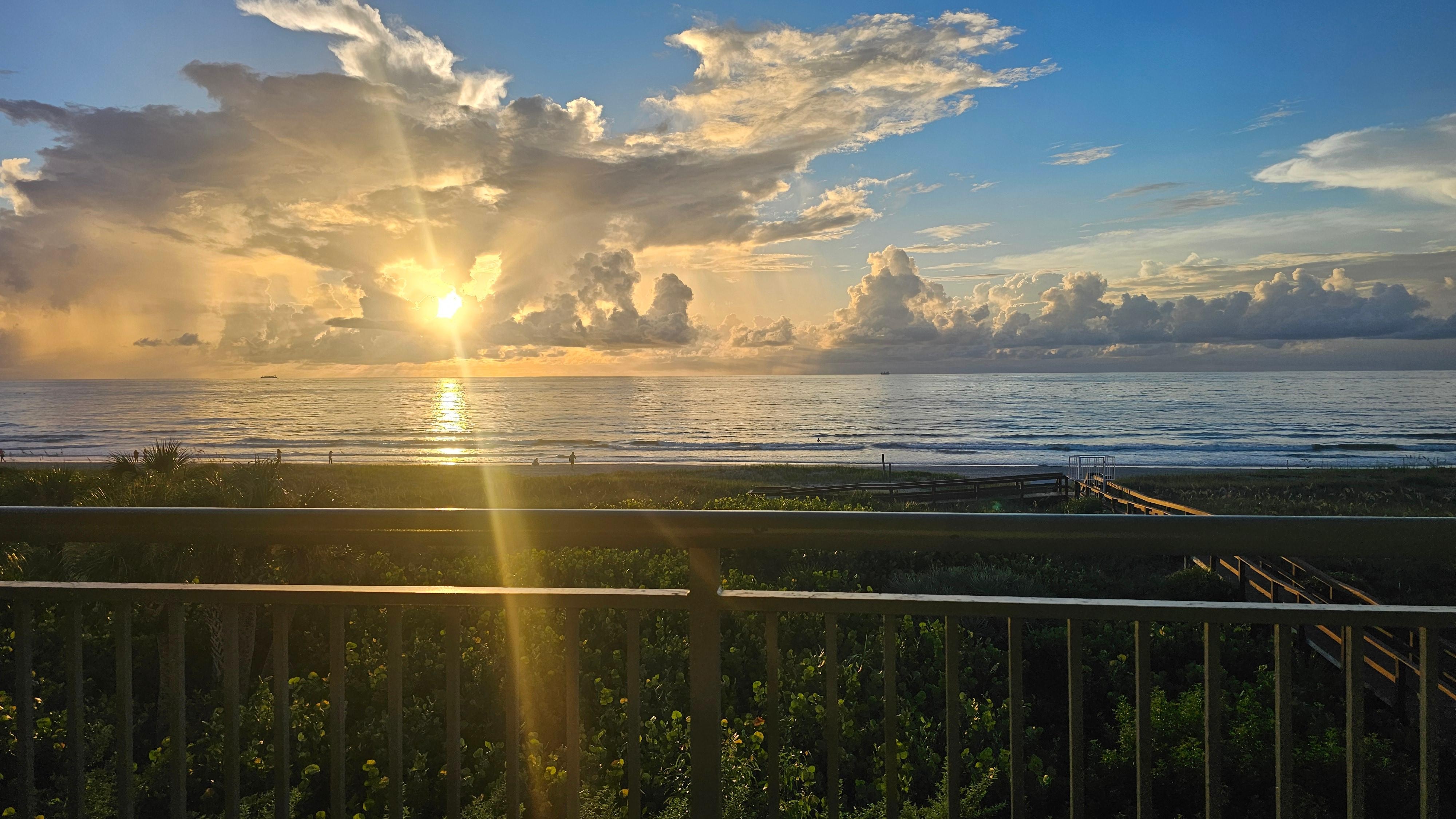 This DIRECT OCEANFRONT unit is located in a gorgeous complex! This 2400+ square foot contemporary condo is a corner unit and luxuriously furnished with every amenity. The private, wrap around balcony is over 700 sq ft. Enjoy ocean views from the kitchen area, living room, and master bedroom! Wake up to the sunrise, play all day in the ocean, relax on the beach, hang out by the pool, and then enjoy the most amazing views of the moonlight reflecting in the ocean. You won't find a nicer, cleaner unit anywhere in Cocoa Beach! We are located 1100 ft. from Ron Jon's and 1 mile from the World Famous Cocoa Beach Pier! We have a heated pool, direct beach access, parking garage, elevator, free wifi, fully equipped kitchen, washer and dryer in unit, TV's in all bedrooms, keyless entry, and outside rinse area. We also provide a cooler, 2 beach chairs, surfboard, and a volleyball for all our units. 5 minute walk to Ron Jon's and Cocoa Beach Surf Co.