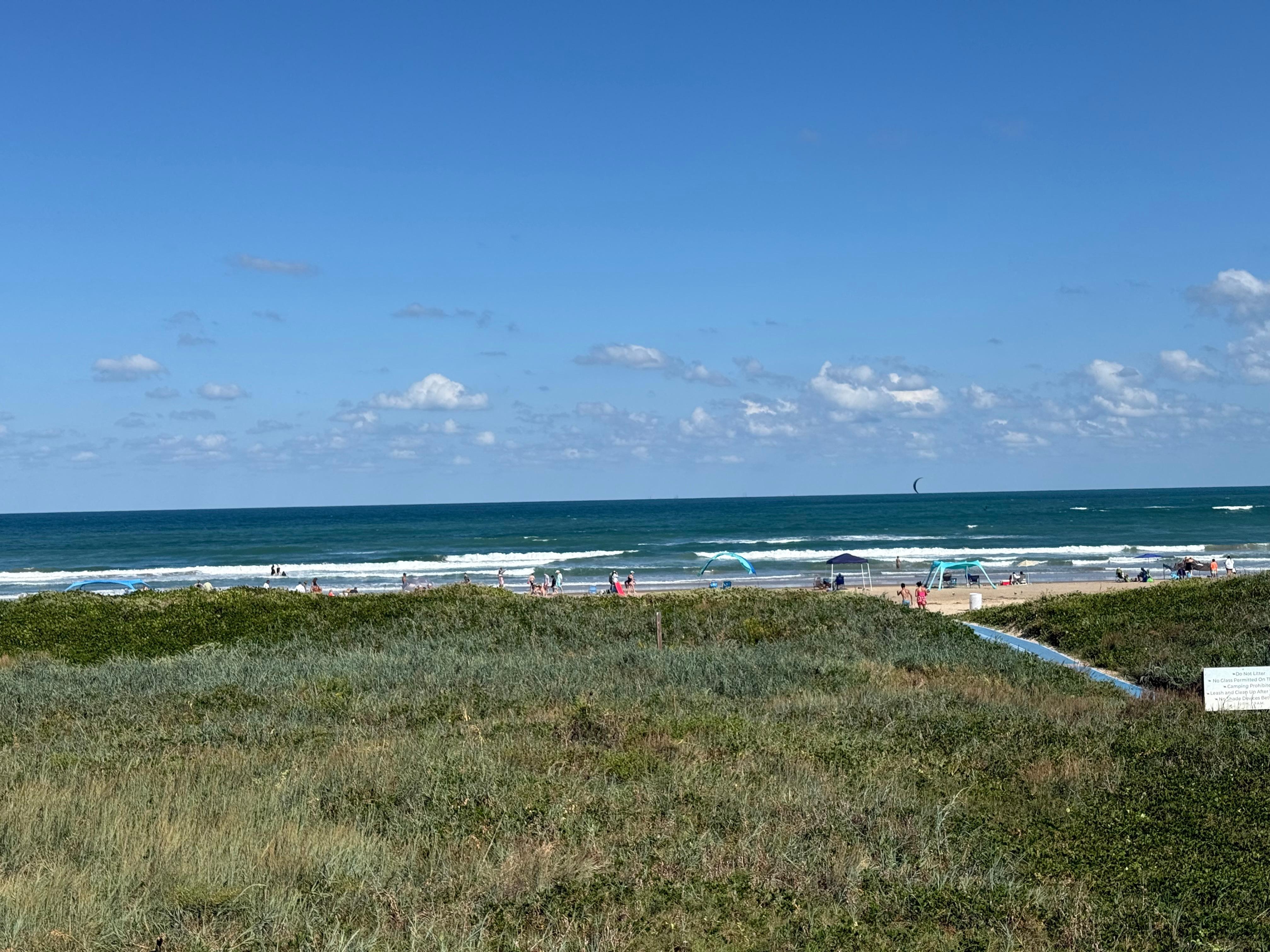 The perfect beach vacation awaits you in our beachfront 3 bedroom/2 bath condo located in the well maintained, gated beachfront Sea Vista complex located next to the Beach Park at Isla Blanca (formerly Schlitterbahn Beach and Water Park). The Sea Vista complex offers 2 swimming pools and hot tubs, 2 tennis/pickle ball courts, charcoal grilling station, free secure on-site parking and direct private access to the beach, just steps from your door. Our beachfront 2nd. floor condo has inside elevator access. Once you walk in the door, there is nothing but dunes, beach and sea...all for your enjoyment. The living/dining area and the master suite have wall-to-wall, floor-to-ceiling windows with the most amazing view of the Gulf of Mexico. Imagine waking up after a restful night of sleep to a magnificent sunrise...it just doesn't get any better than that!!! This same view can also be enjoyed from the kitchen while preparing that gourmet meal. Relax on the spacious balcony sipping your favorite beverage and feeling the gulf breezes while watching the ships and shrimp boats come and go or the occasional pod of dolphins play in the surf. The beachfront master suite has a king size bed and a small sitting area. The en-suite has a tub/shower combination and a quartz countertop vanity. The second bedroom also has a king size bed and a twin size trundle bed. This bedroom comfortably sleeps 4. The third bedroom has 2 queen size beds and can comfortably sleep 4 as well. The two guest bedrooms share the guest bathroom which has a walk-in shower and a quartz countertop vanity. All 3 bedrooms have their own dressers, closets, large flat screen TVs and sitting areas. The bedrooms and bathrooms are outfitted with luxury linens and towels. We also provide a Pack-N-Play for your little one. Paper products and soaps are provided to get you started, even shampoo and conditioner. The kitchen, with a quartz countertop has a range, microwave, dishwasher, and a refrigerator with ice maker. It is stocked with high quality dishes, glassware, flatware, pots and pans and a starter supply of herbs and spices. As well as several small kitchen appliances to enhance your cooking pleasure. Paper towels and trash bags are supplied to get you started and there are some cleaning supplies. To increase your vacation pleasure, there are 4 large flat screen TVs with Spectrum cable and free password protected WiFi. The condo is fully air conditioned and has 4 ceiling fans...1 in each bedroom plus the living/dining area. A full size washer and dryer are conveniently located inside the condo. A starter supply of laundry products is provided. For your beach time enjoyment, we provide beach towels, beach chairs, a beach umbrella, boogie boards and some sand toys to build that amazing sand castle. As a guest of Sea Vista you may purchase discounted Beach Park at Isla Blanca (Schlitterbahn) tickets available only through the Sea Vista office during the summer. There are many good restaurants and bars located nearby, many within walking distance. The dolphin-watch boat rides leave from the nearby pier on the west side of Padre Blvd. Relax and enjoy your vacation.