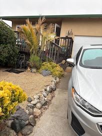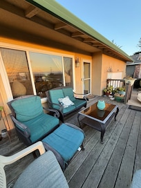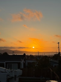 I love how sunny this area is. When others are socked into the fog ...my house is at the top of the hill looking out over it. Flowers do well here. I love the sounds of the birds and ocean. The sunsets are amazing, so amazing that honestly...i prefer the sunset over the bay view. The back bedroom has a comfy king bed with a large sliding door to bring in sunlight and enjoy the back patio. The L shaped patio is wind protected and yet there is also an upper garden with a seating corner that has a view of the bay. This is why the property was named Many Ocean views. The house sits next to many trails with bay views.