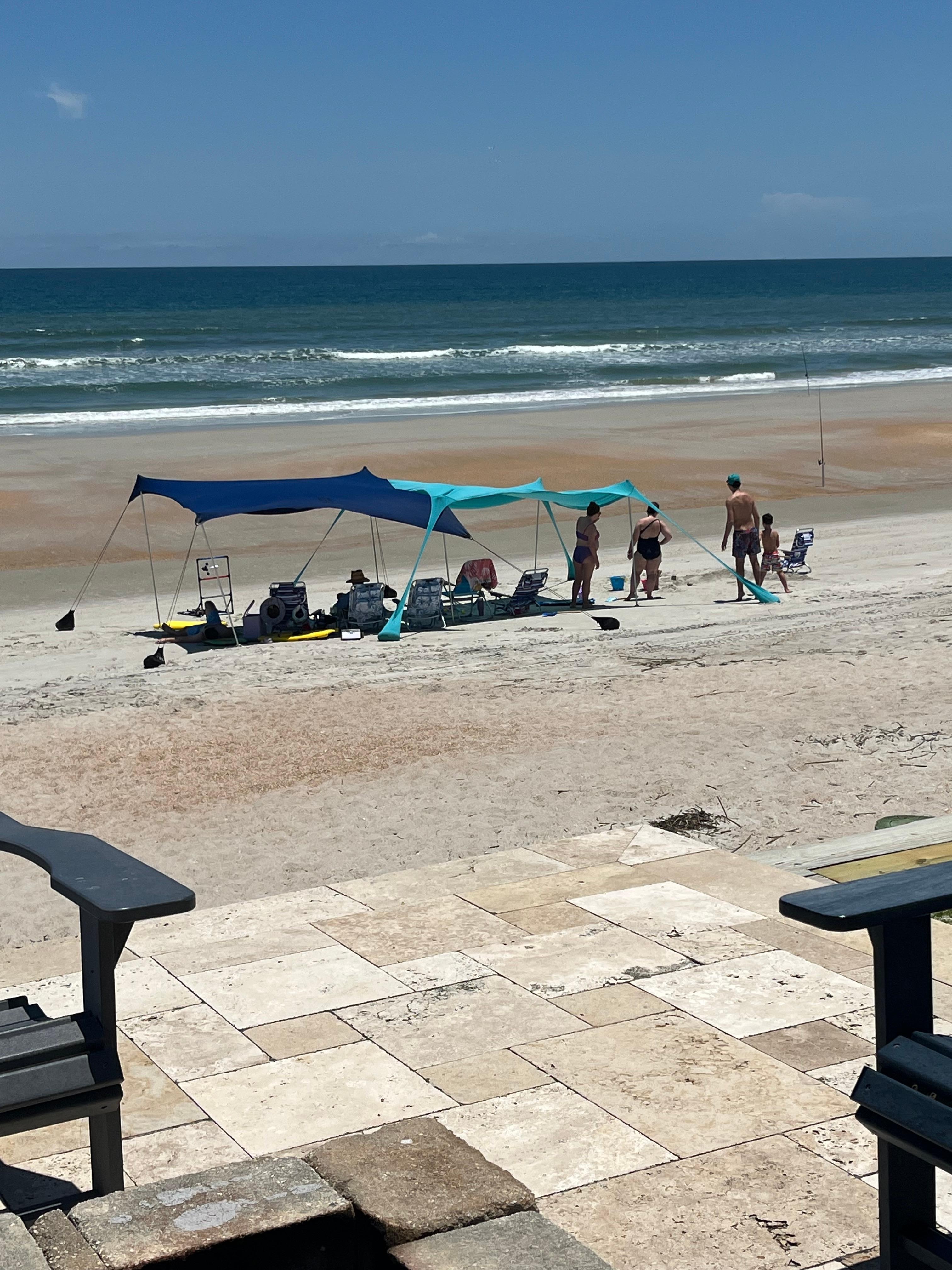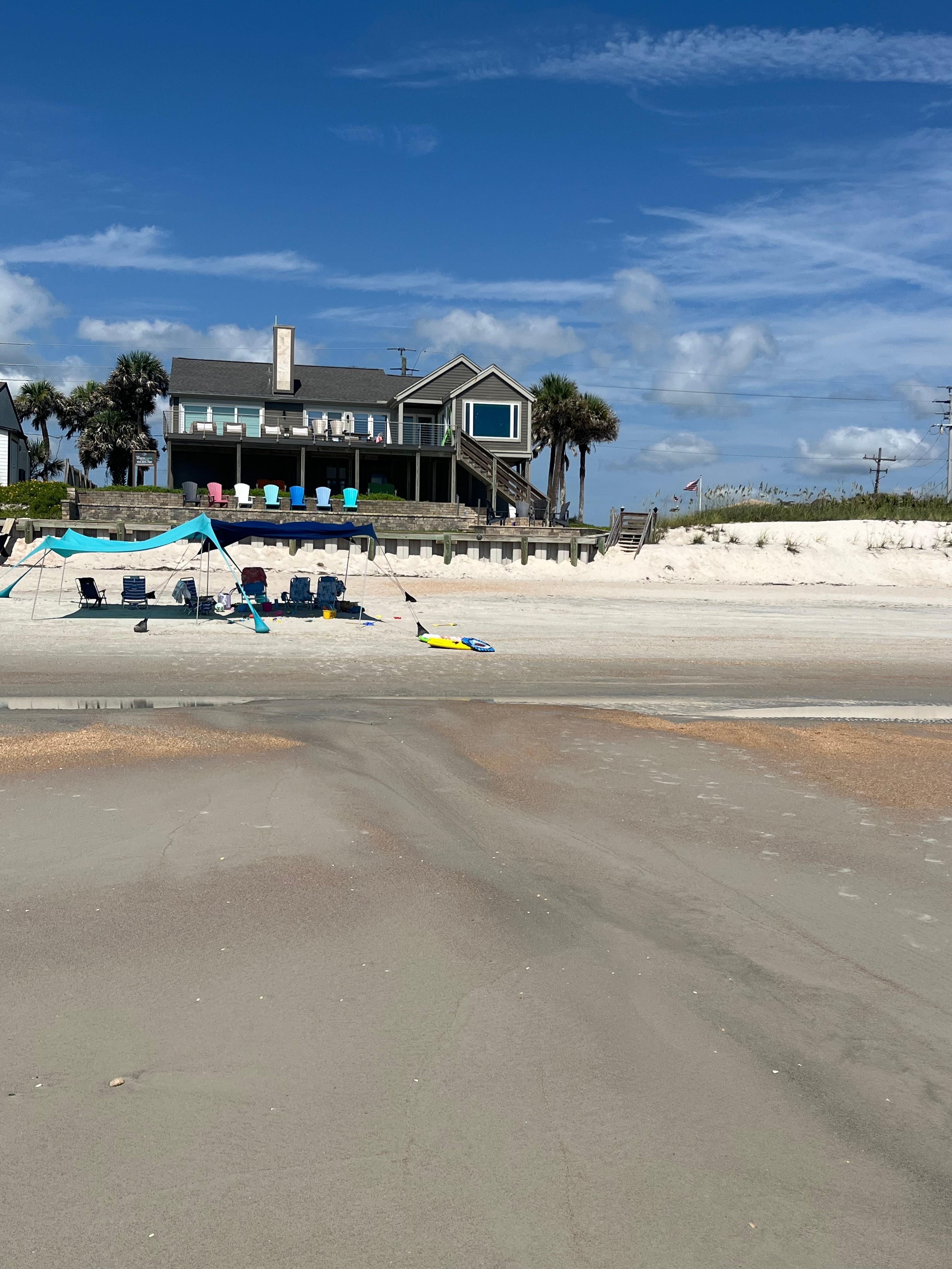 This beach home is located directly on the Atlantic Ocean. Check out the beautiful panoramic views of miles and miles of beach, spectacular sun rises and amazing moon rises. Experience endless beach walks, fishing, swimming, sun bathing, paddle and skim boarding, surfing, shell and shark teeth searching...the list goes on. Enjoy lounging on our very spacious deck, watching the waves come crashing in. Our beautiful home is located on A1A about 5 miles north of the North Bridge going into historical St. Augustine where you can enjoy touring the town by trolley, golf cart, walking, or car. This rental comes with a street legal 49cc scooter, courtesy of The Toy Barn. It is available at a rate of $95 for the first day and $50 for each additional day. Please let us know if this is something that you would like included with your rental. Endless fun for everyone!