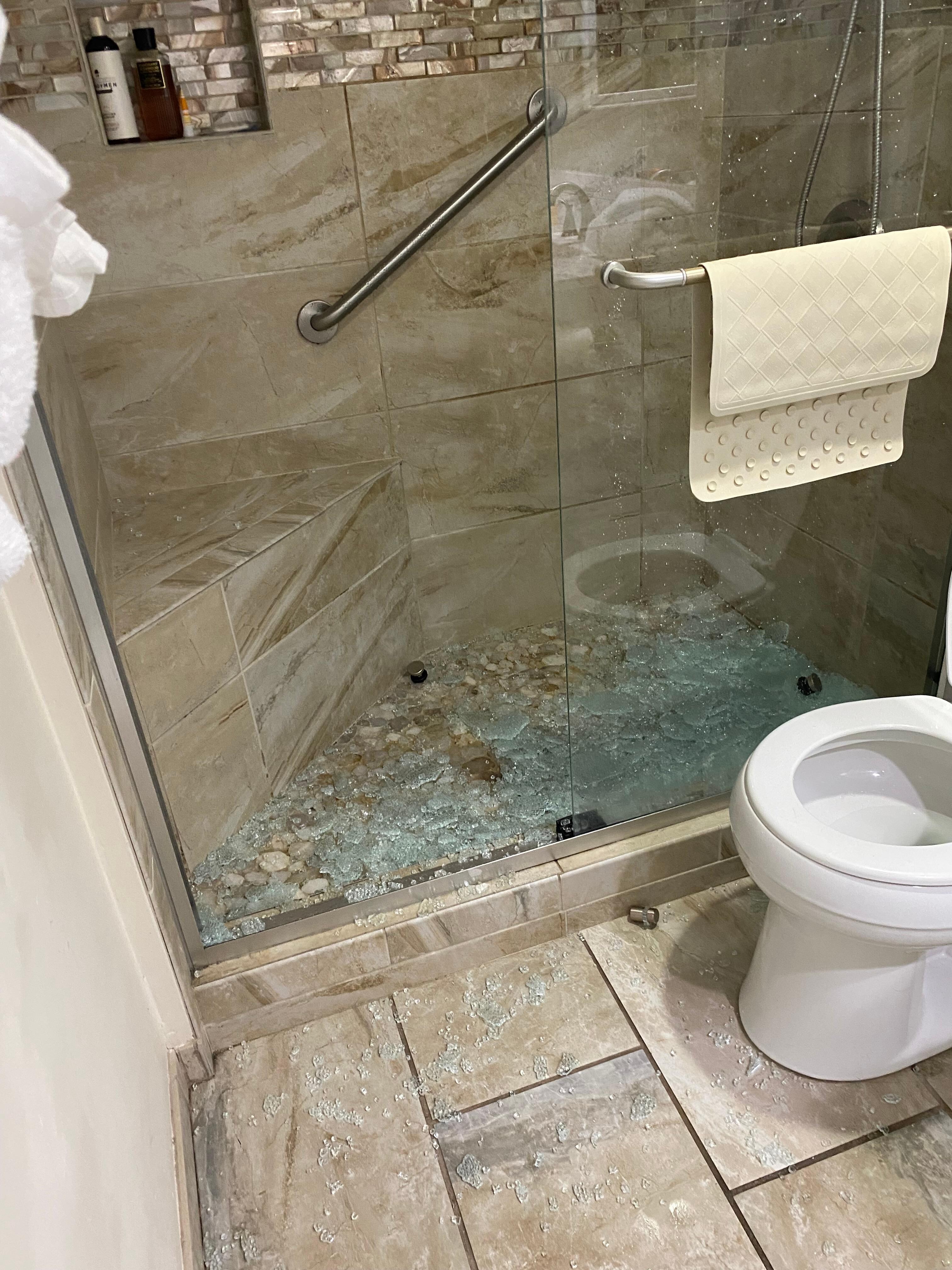 Shower door shattered on me while showering. Place is dirty, poorly staffed, and outdated.