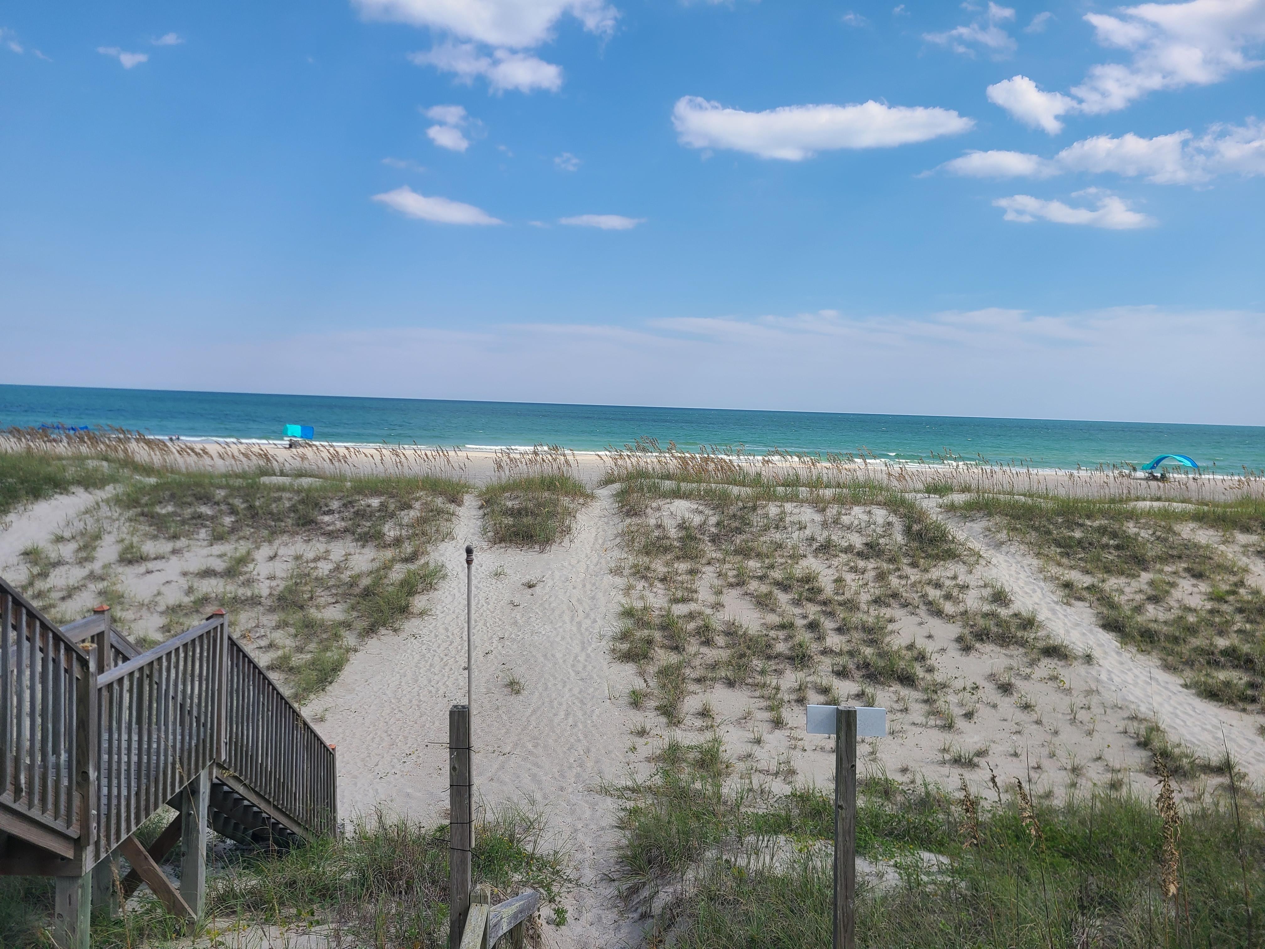 Nestled at the foot of the beach, this home offers splendid panoramic ocean views while you relax with friends and loved ones on the two-level covered decks. Located on the south end of Topsail Beach, our beaches are less crowded, extra wide and can be enjoyed all day during low and high tides! The home is a short walk to local attractions, park, dining, shopping and fishing pier! Chair lifts located inside the home offer assistance for guests who may have difficulties using stairs. Outdoor showers are conveniently located on the beach access and a fully enclosed outdoor shower is located at the carport.