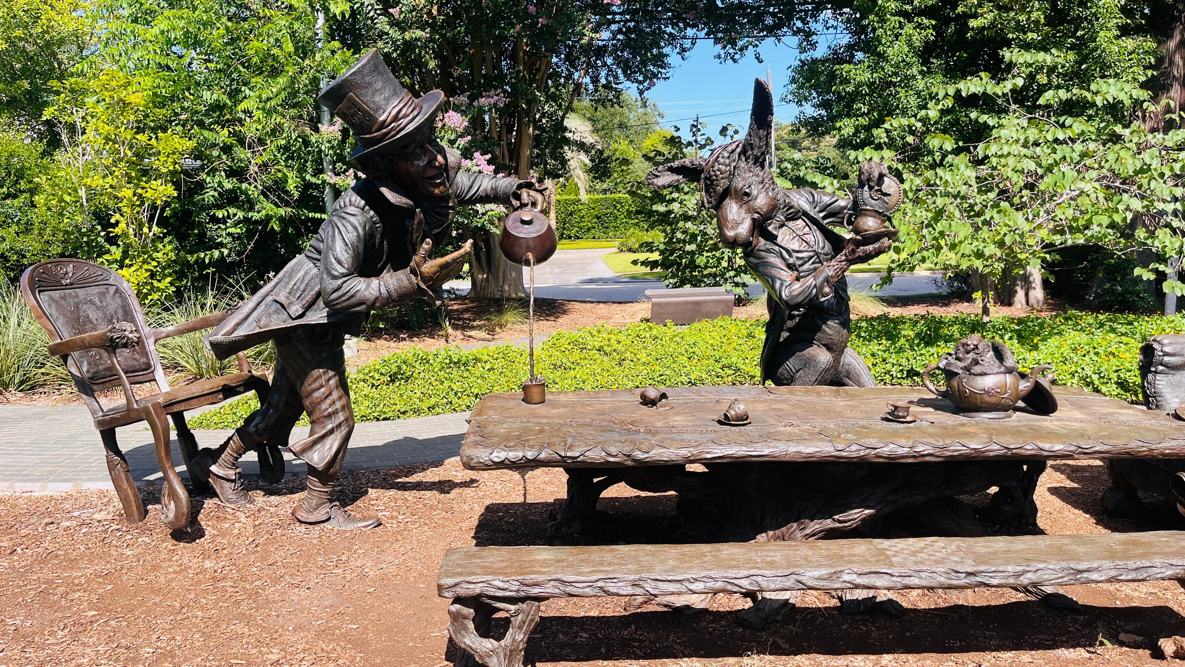 If you like, and I am available, I can give you a tour of my monumental sculpture of Alice in Wonderland's Mad Hatter tea party. The sculpture is located in Houston, in Evelyn's Park. There is no charge for this, though I'm highly motivated by the promise of a meal. It also hosts 150 hidden things in honor of the 150th anniversary of the story. It proves to be the best selfie spot in Texas.
