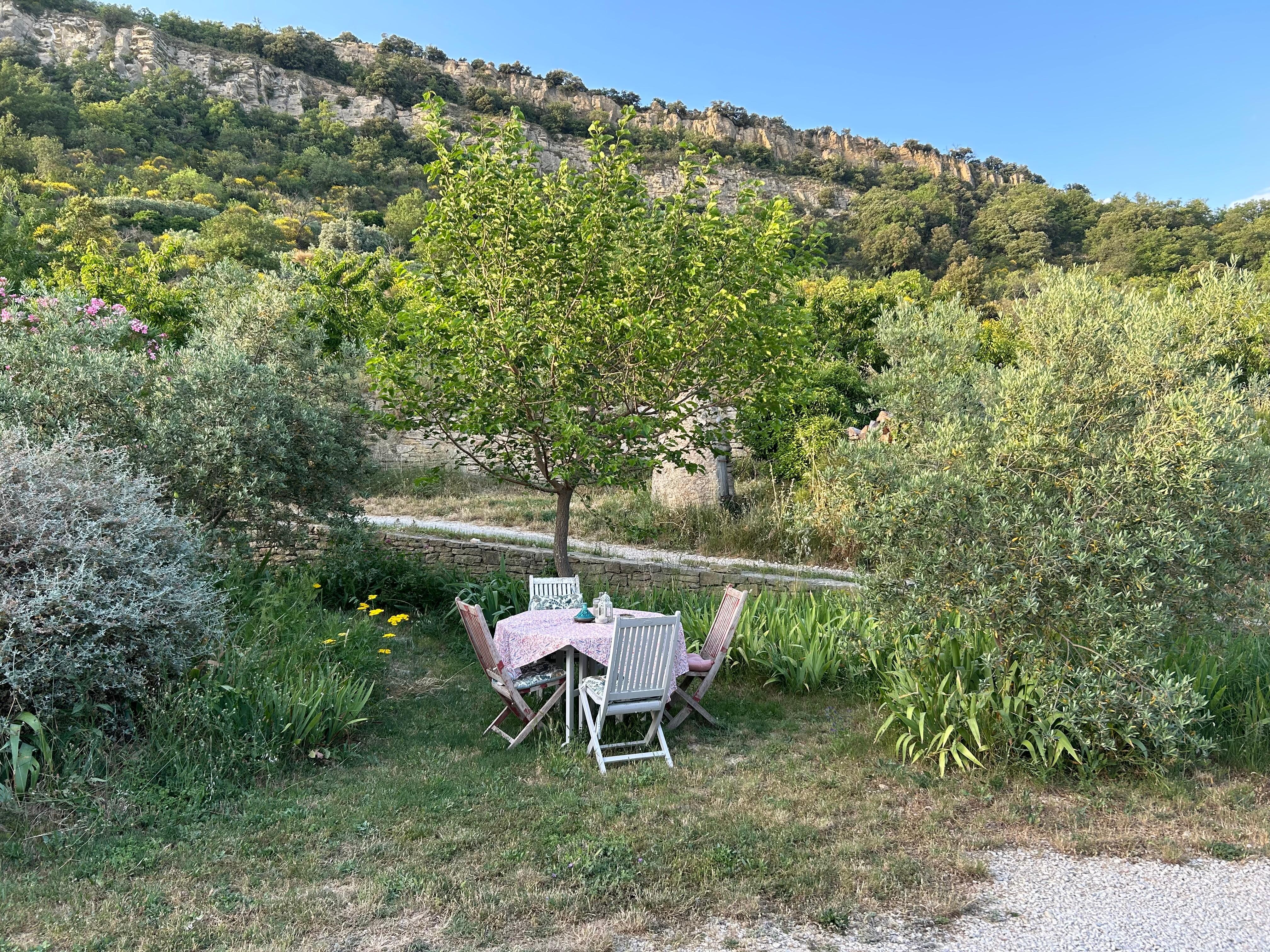 Our cottage is located in a small hamlet in the countryside, 4km from the village of Barroux and 3km from Malaucène, ideally located for visiting the Vaucluse (Next to the Dentelles de Montmirail and at the foot of Ventoux, the summit of which is 25 km away, Avignon and Orange at 35 km, Vaison-la-Romaine at 12km, the beautiful villages of the Luberon like Gordes, Bonnieux, Ménerbes at 50 km, L'Isle-sur-la Sorgue at 35 km). Nestled at the foot of the Clairier cliff, in the heart of cherry, apricot and olive orchards, you will appreciate the place for its calm and its immediate access to nature. Ideal for a family of 3 to 4 people, the gite, with an area of around 80 m2, is composed of a kitchen-dining room, a small sitting area, 2 bedrooms, a bathroom separate bath and wc. The terrace and the enclosed garden are wooded and private. In July and August, you will have free access to our swimming pool (7.5m x 3.5m), adjoining the gîte.