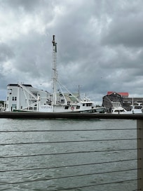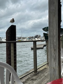 Our bayside dock includes boat slips and provides immediate swimming, fishing and crabbing fun. The deck is shared space with the upstairs level of the home and we've got everyone covered: life jackets, crab traps, fishing rods, floats, and paddle boards all provided.