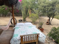 This little “off the grid” casa brings inside living outside with the fully covered veranda porch. There you can have your coffee and watch the sunrise with all the morning bird activity. You can view the vibrant animal life of the Sea of Cortez with seasonal whales traveling through, jumping manta rays, and ospreys perched scanning for their next meal. At night, feel as though you are among the stars in an area with virtually zero light pollution. Directly across the roadway is Las Barracas beach where you can go for a kayak paddle, look for the signs of nesting sea turtles or just lay in the warm sand and read a book.