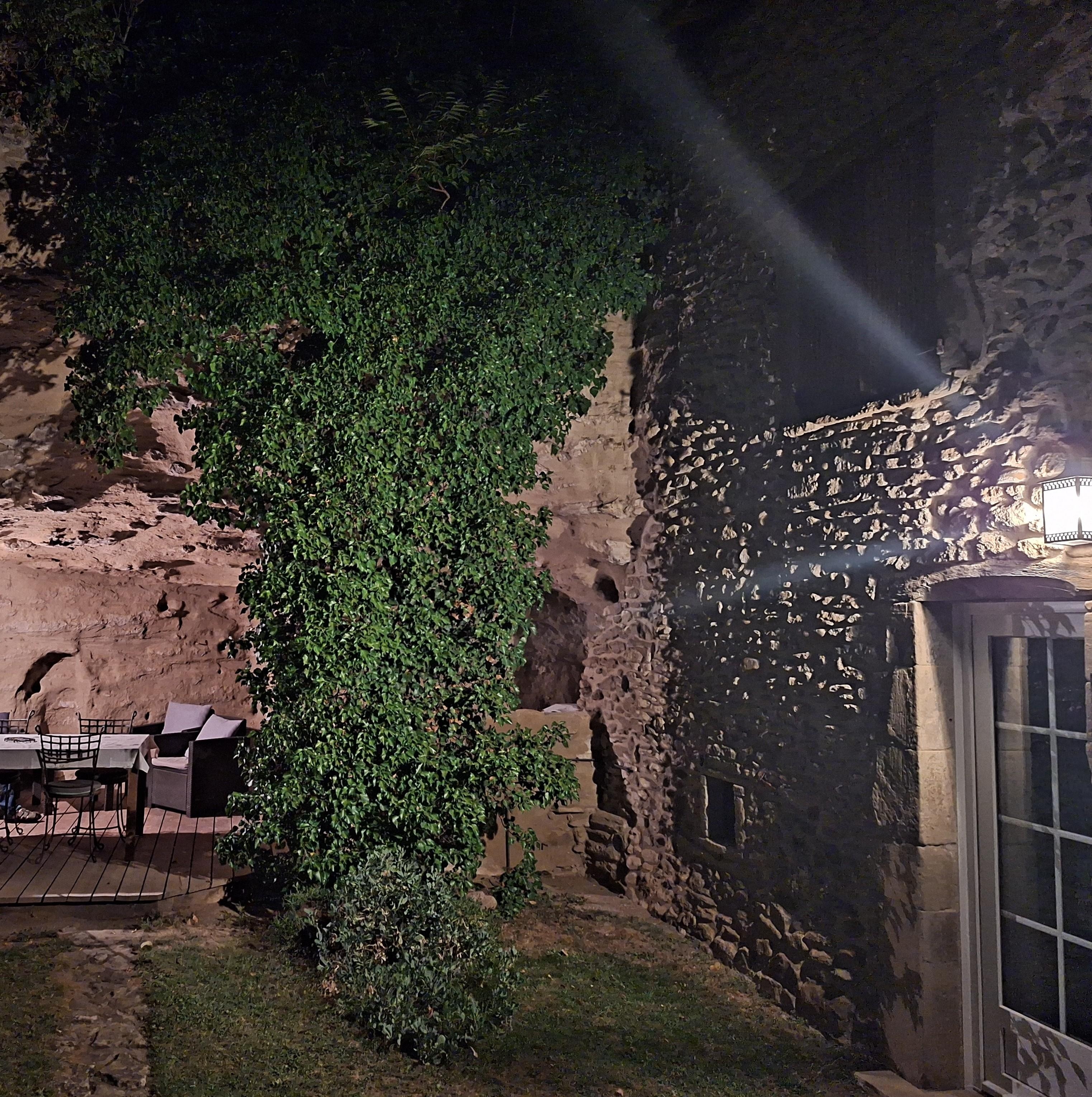 Small enclosed courtyard with its sheltered terrace under the rock, and location to enjoy some grills.
