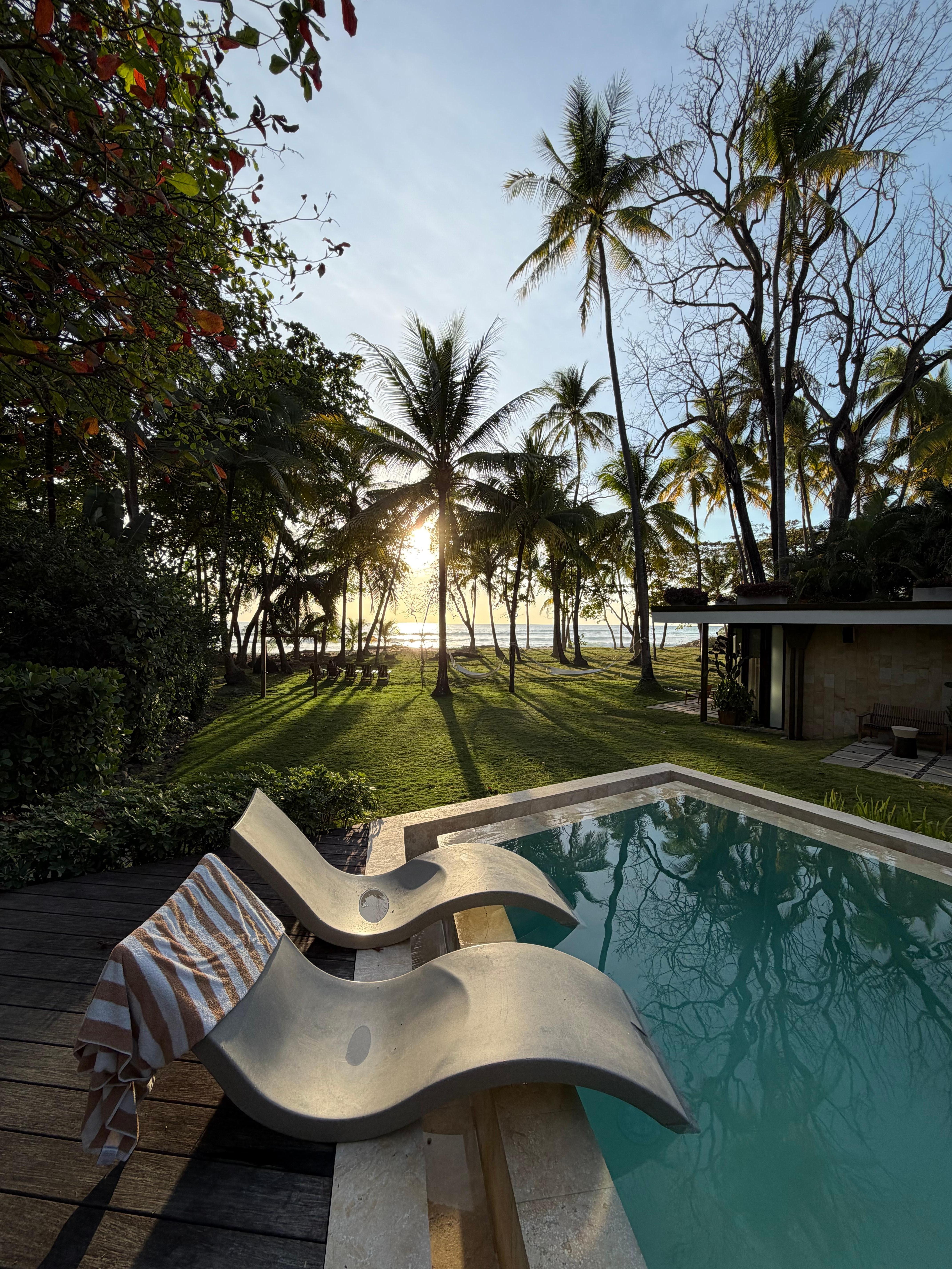 The perfect beachfront destination for a multi-family vacation, the Corazon Estate combines neighboring villas Sare and Coracali into one large estate with accommodations for twelve. With two swimming pools, two fully-equipped kitchens, and six en-suite bedrooms, this villa combination increases luxury and privacy. Corazon’s open-air architectural design creates an incredible free-flowing environment, allowing its guests to fully embrace the beautiful climate of Costa Rica.