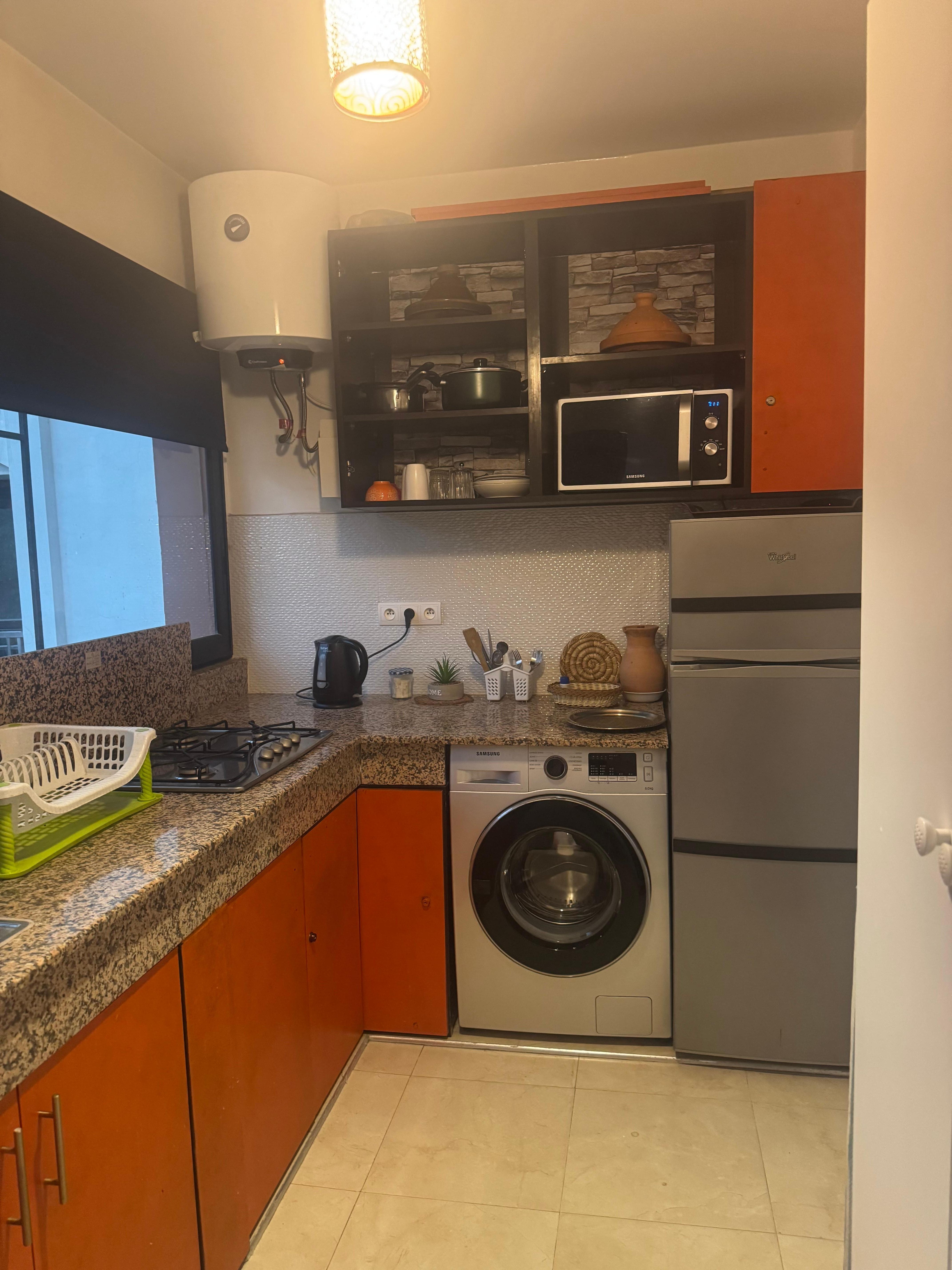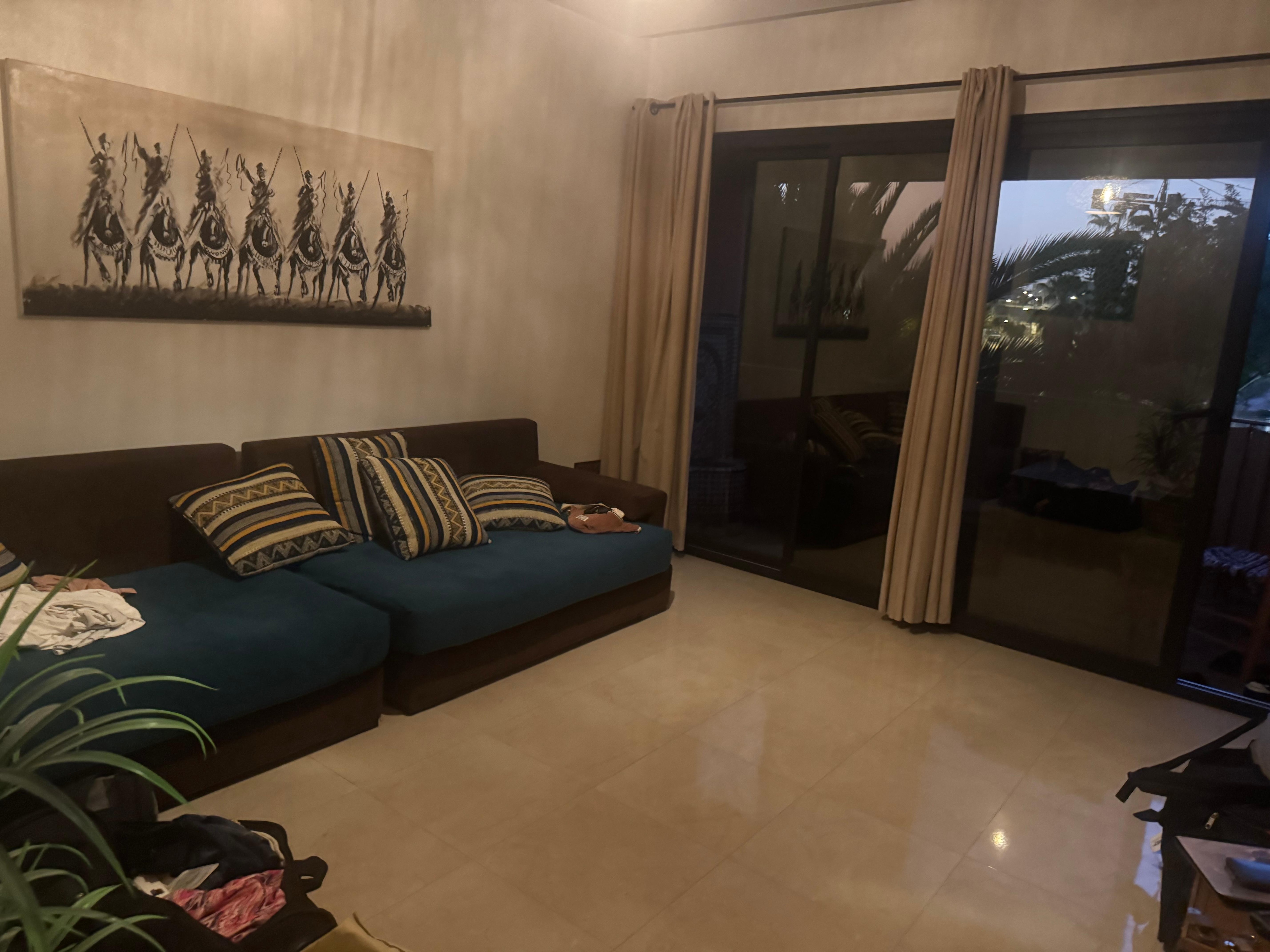 Arrivée à l’aéroport à 10h30, il me faut un taxi. Je me renseigne cela me coute 15 euros pour se rendre à Agadir. Mais que faire des valises en attendant l’heure de 16h pour le checking ? Je demande à l’hôte comment pouvons nous faire ? Il me propose de venir me chercher à l’aéroport, de déposer mes valises à l’appartement le temps d’attendre 16h. Sinon c’est pas possible de garder les valises.. donc je n’ai pas vraiment le choix mais cela me coûte le double 30 euros. Ménage fait, il me rappelle vers 14h30 et nous commençons la visite de l’appartement. Salon, balcon, chambre correct. La cuisine à notre grande surprise ne possède pas d’eau chaude au robinet (comment faire la vaisselle ??). et dommage qu’il manque quelques ustensiles de cuisine comme un tire-bouchon, une passoire…) Concernant la salle de bain : elle est toute petite, lavabo idem pas de possibilité d’avoir de l’eau chaude et inaccessible. Le lavabo se trouve dans un tout petit coin. La douche est collée au toilette donc quand vous vous lavez, elle coule sur les toilettes. Pas très agréable, pour le prochain passage au WC. Appartement proche, bien situé, proche de la plage, à environ 20 mn de marche. Vue sur jardin